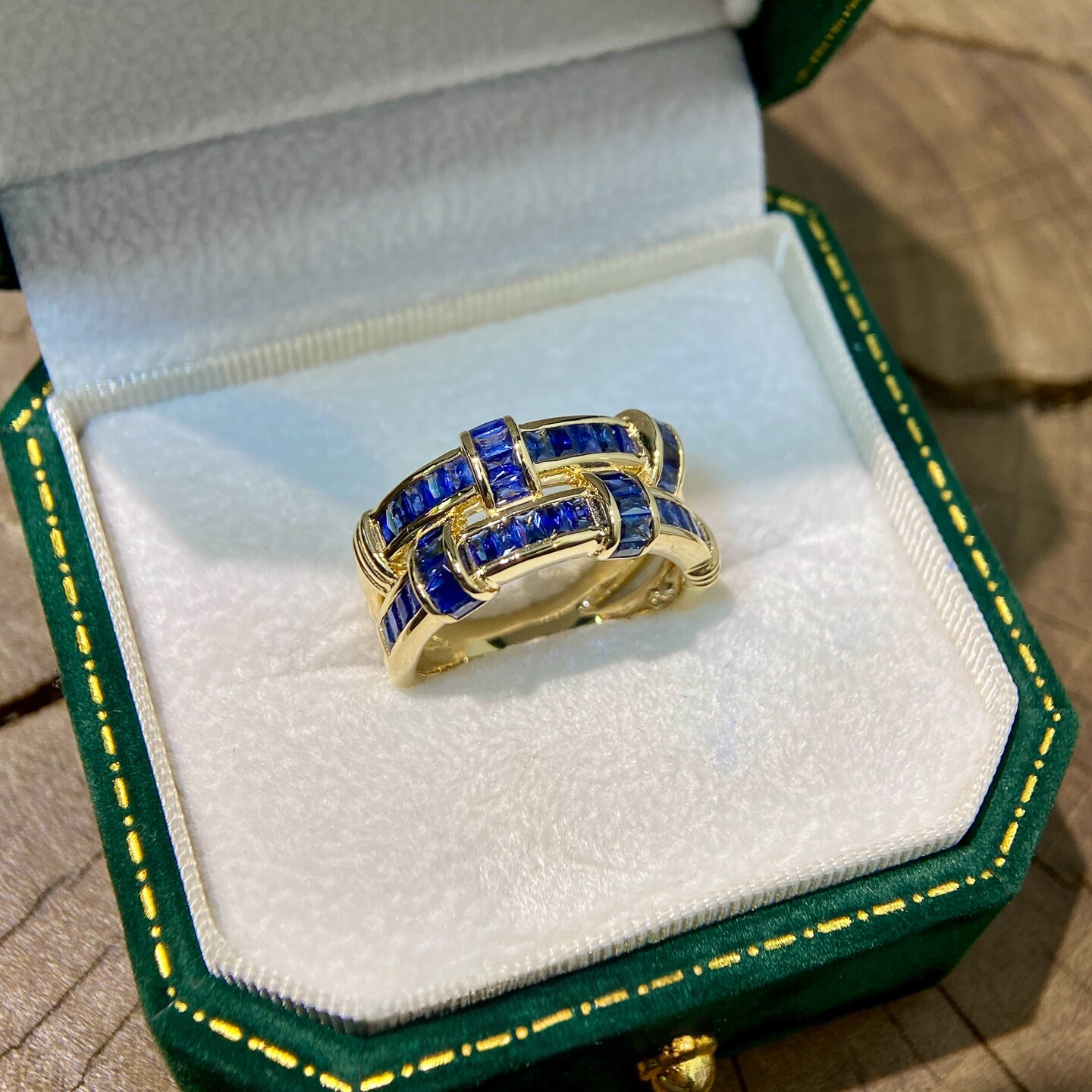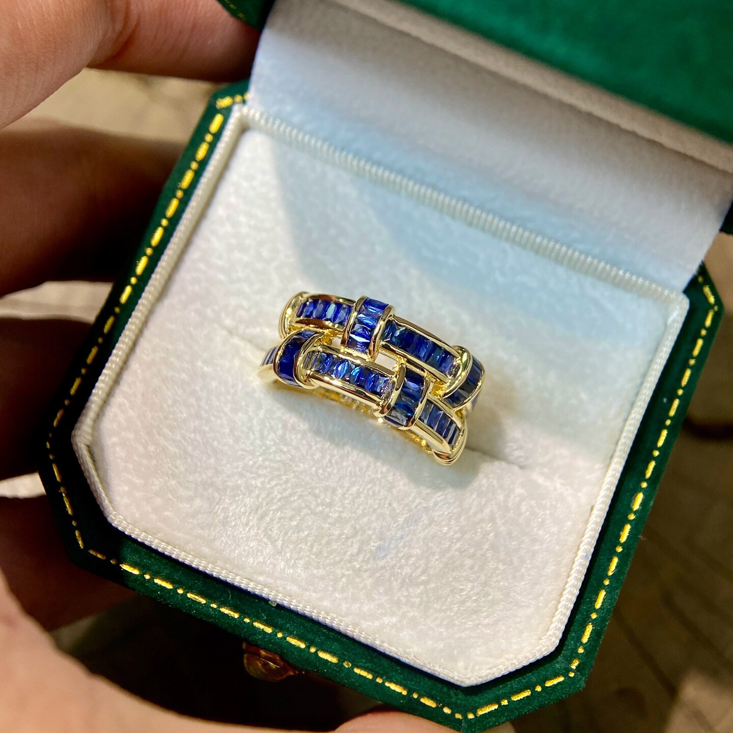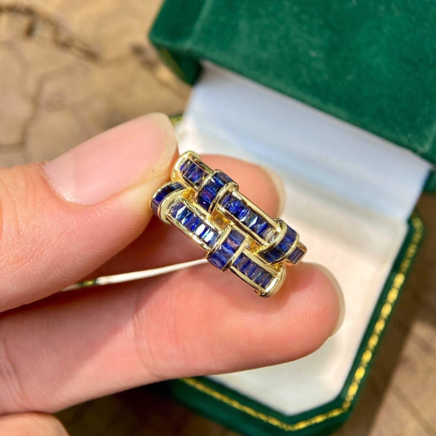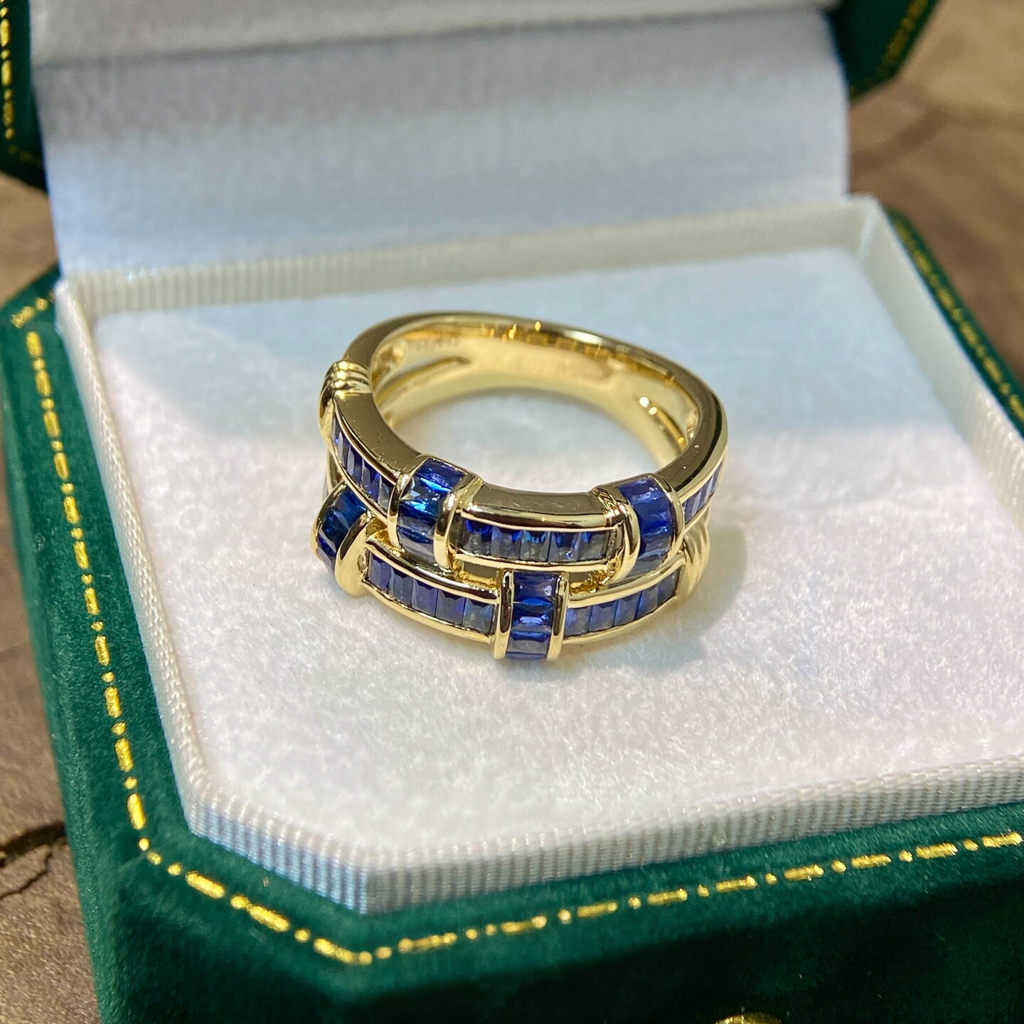 vintage中古双层蓝色闪钻戒指轻奢贵气精致独特高级感气质指环女