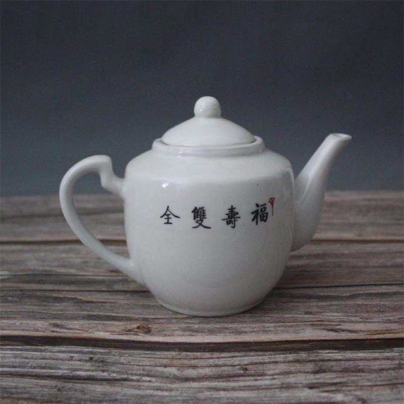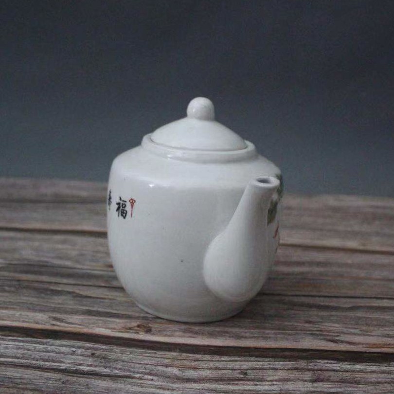 清光绪粉彩福寿双全图茶壶景德镇仿古陶瓷家居装饰摆件家用茶具