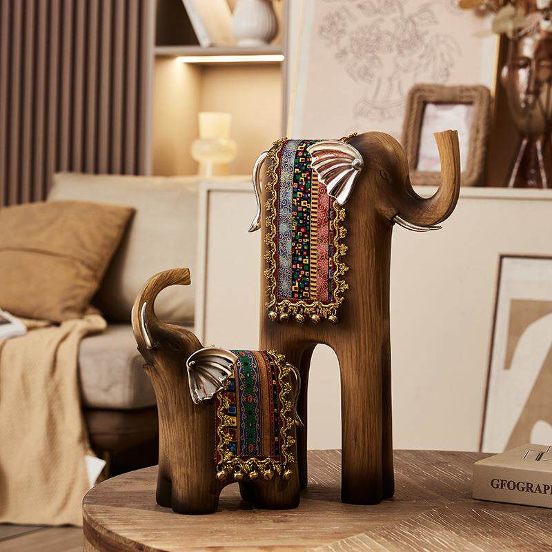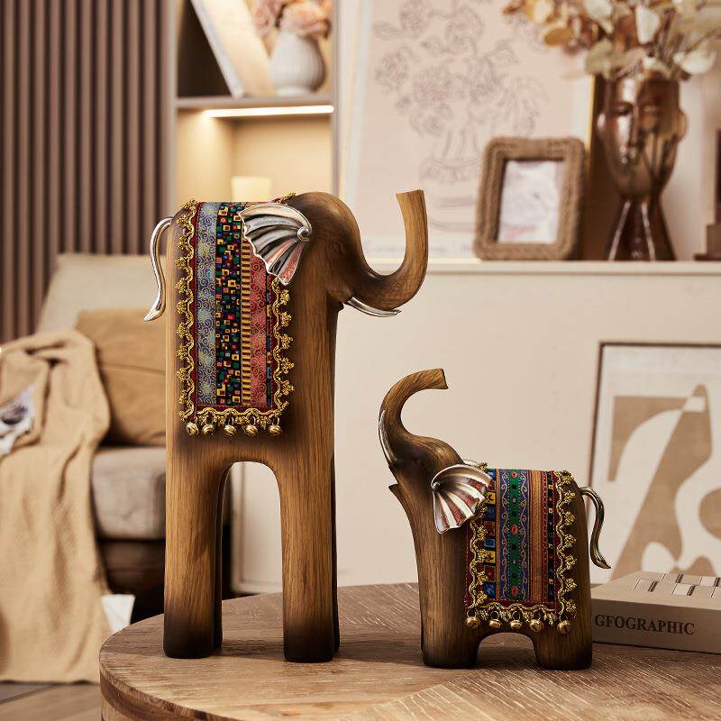 创意树脂仿木民族风格大象摆件客厅玄关卧室茶几装饰品软装小摆件