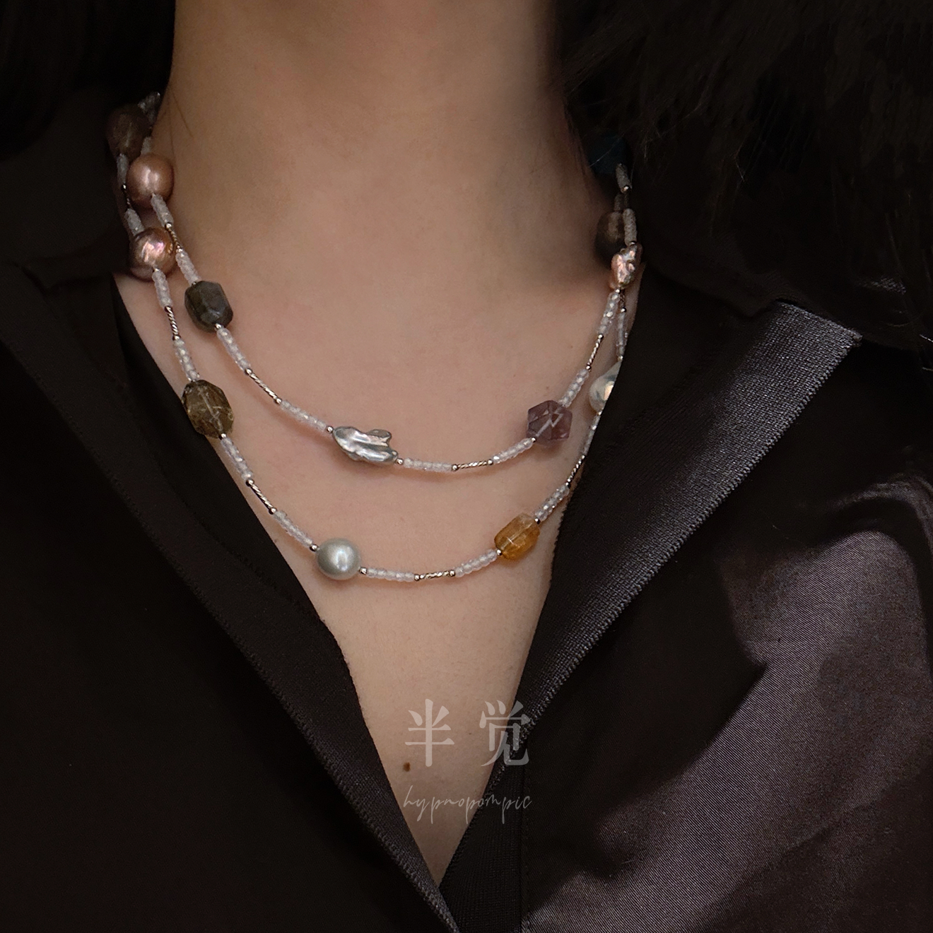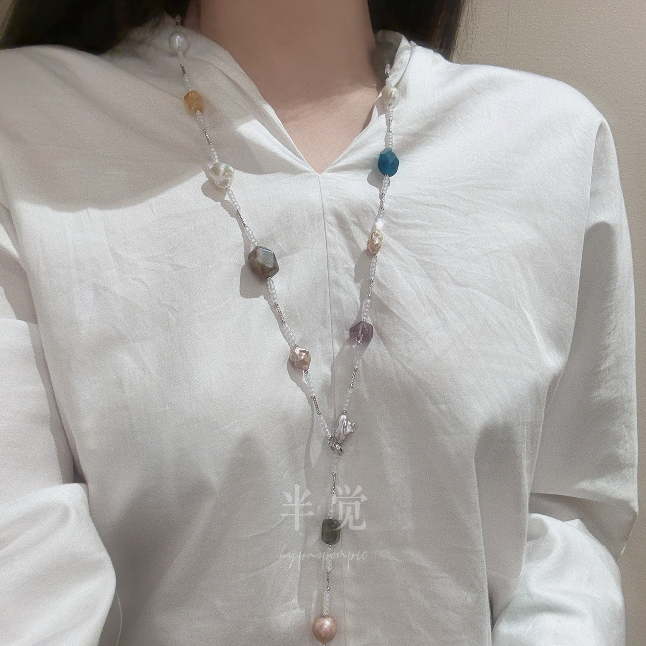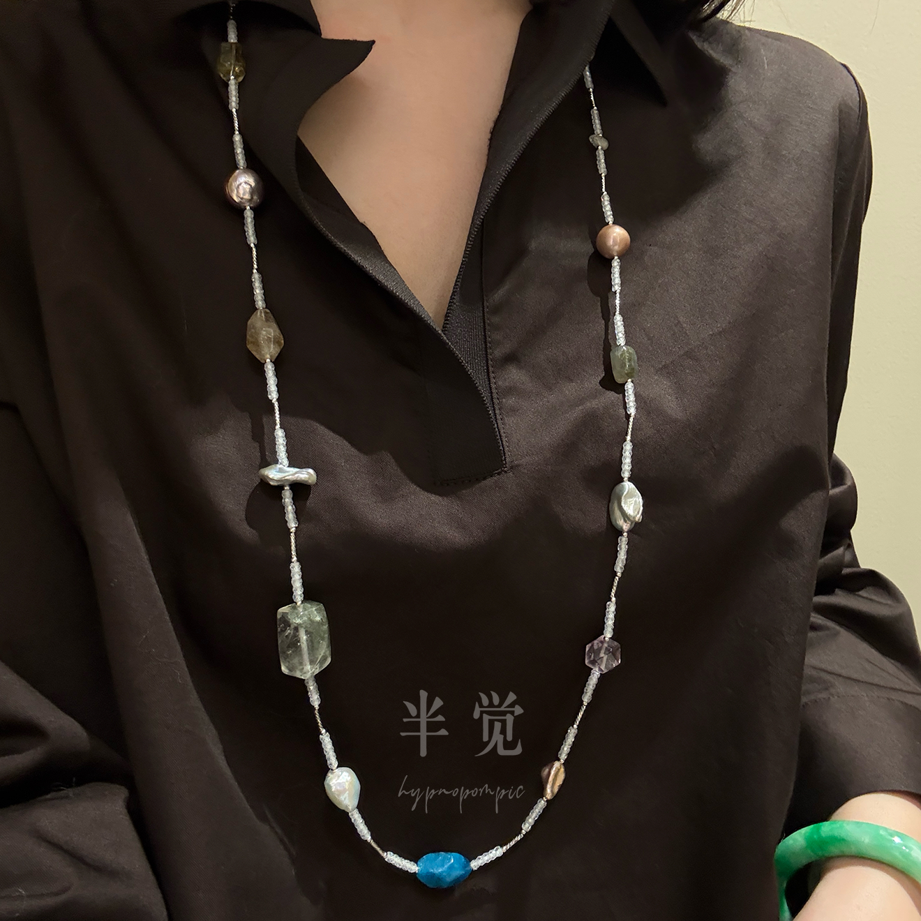半觉原创水晶珍珠长项链高级感百搭毛衣链女长款
