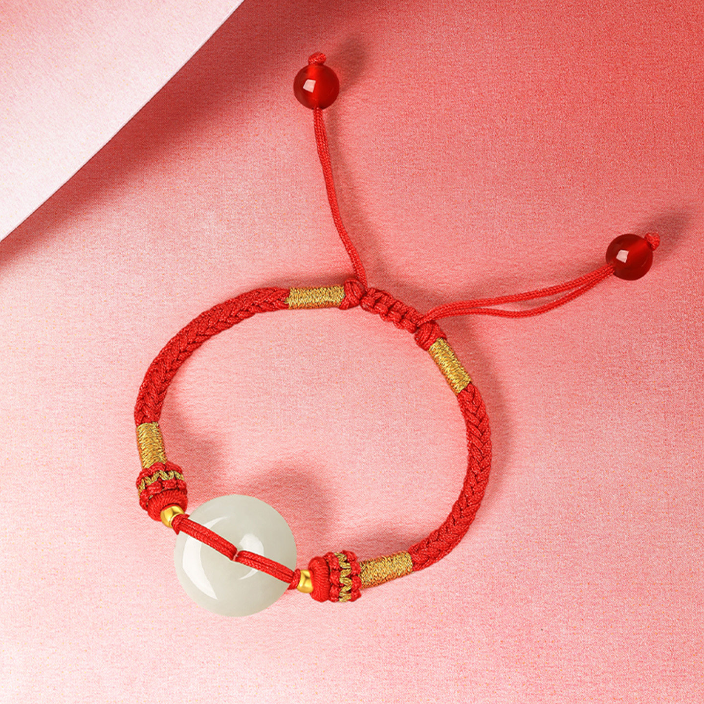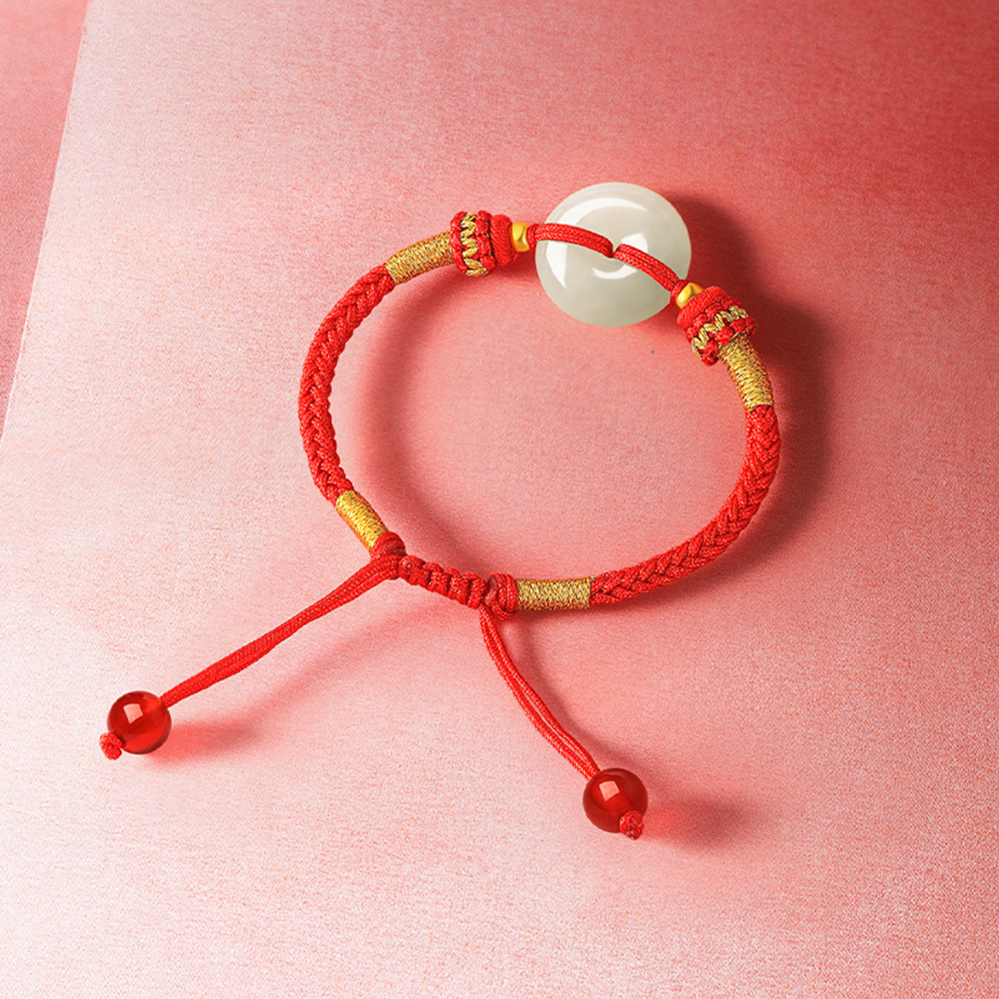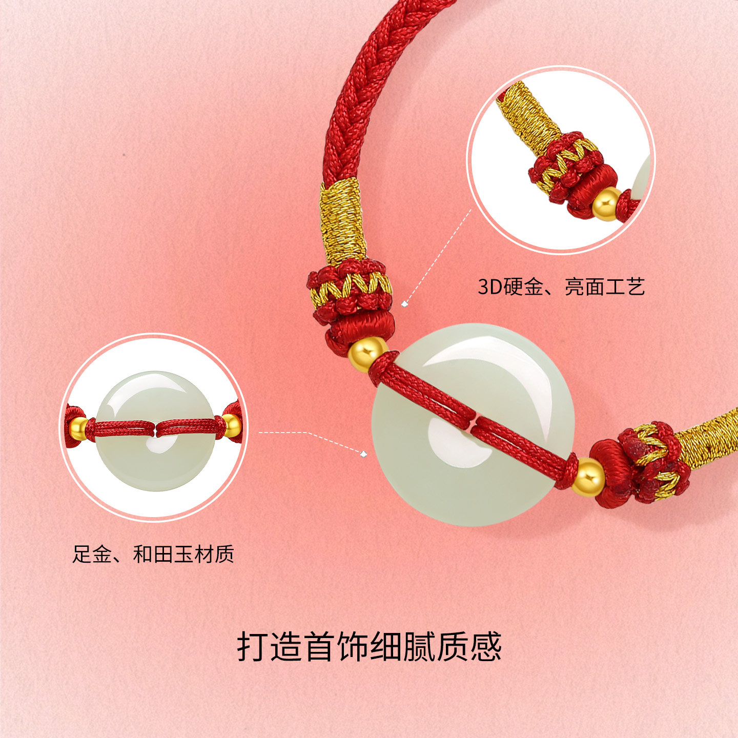 周六福金镶玉和田青玉平安扣编织手绳宝宝款红绳首饰新年礼物