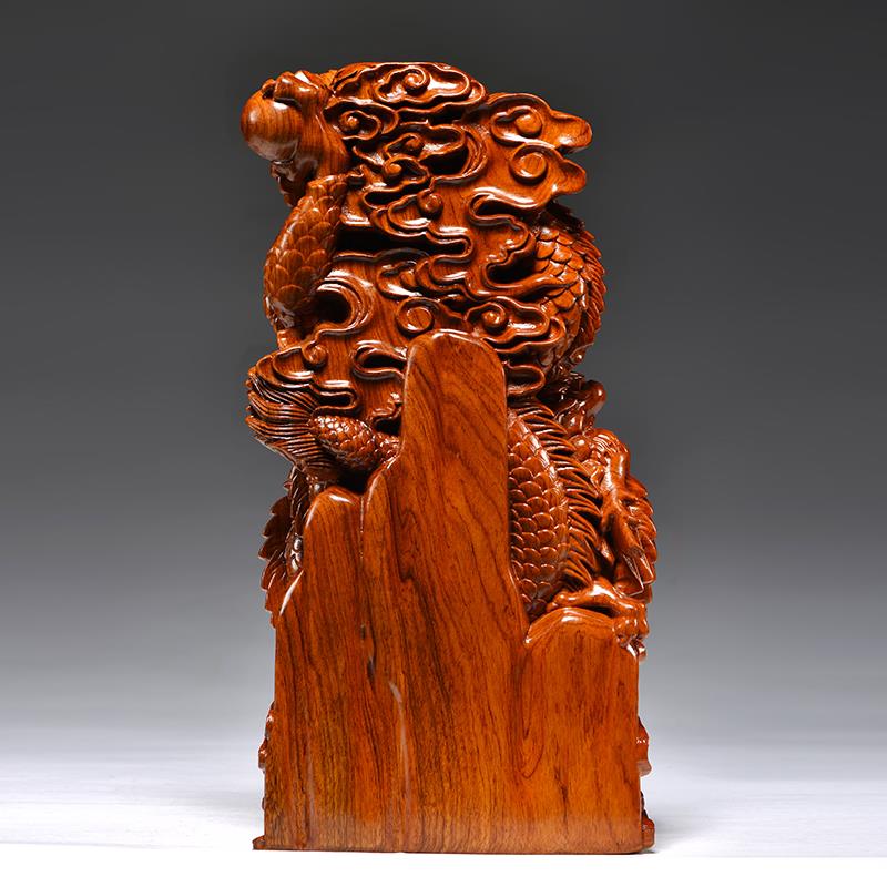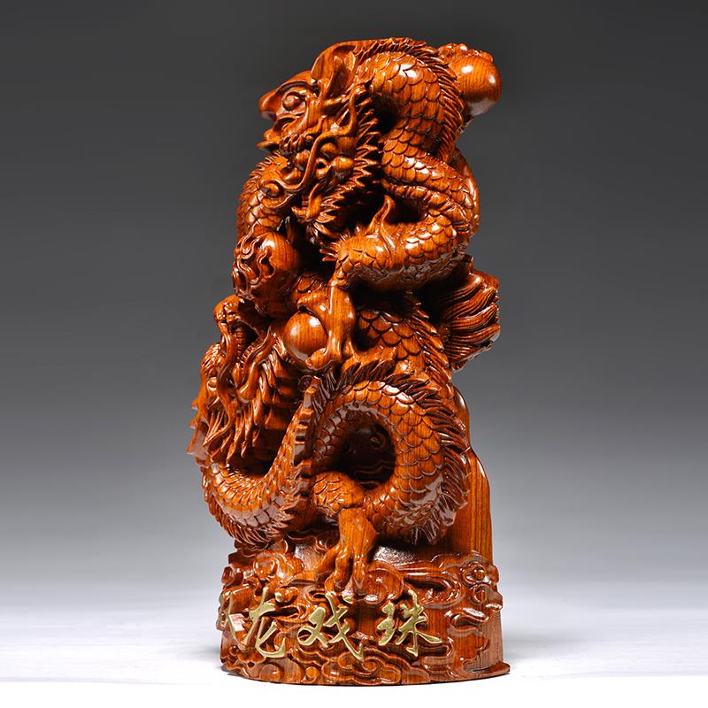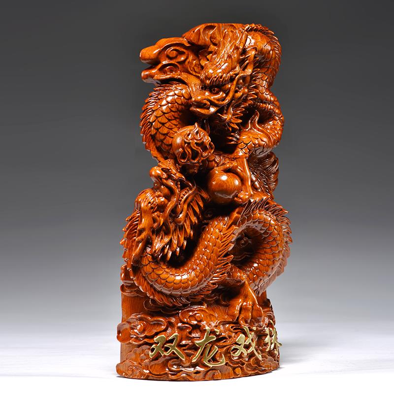 花梨木雕龙摆件实木质双龙戏珠家居客厅办公室装饰生肖工艺品送礼