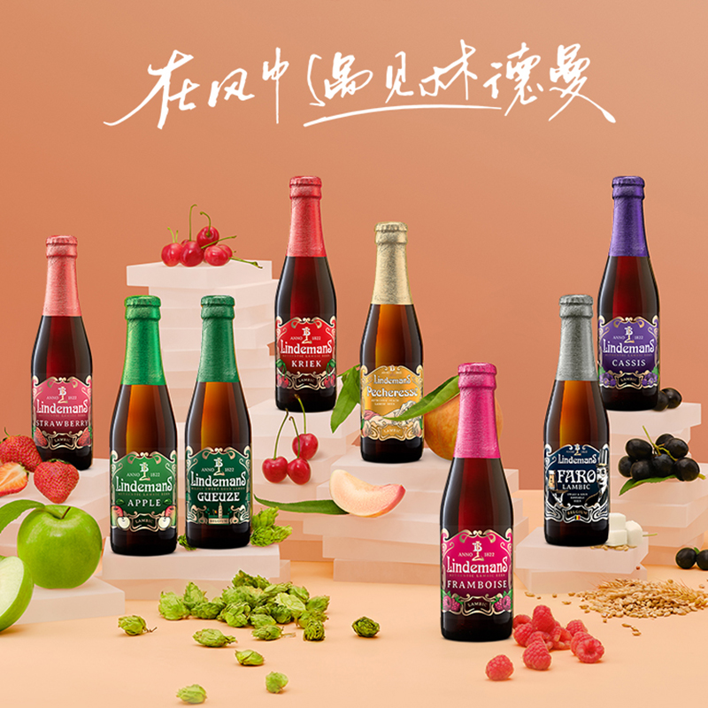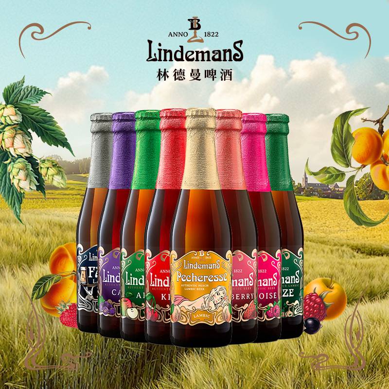 【进口】林德曼果桃子樱桃草莓8口味随机组合装精酿啤酒