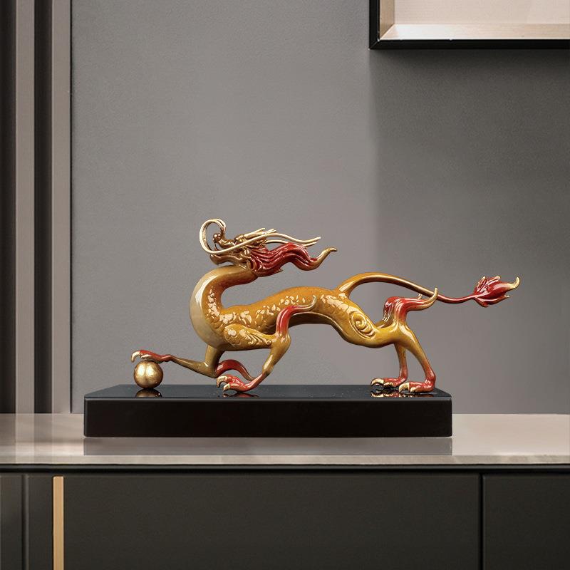 黄铜龙摆件中式生肖龙工艺品办公室玄关桌面装饰开业送礼龙年礼品