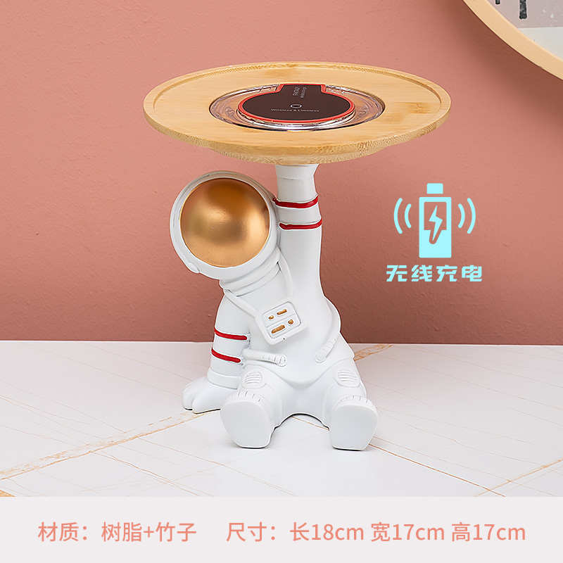 创意宇航员无线充电托盘客厅玄关进门钥匙收纳太空人摆件家居饰品