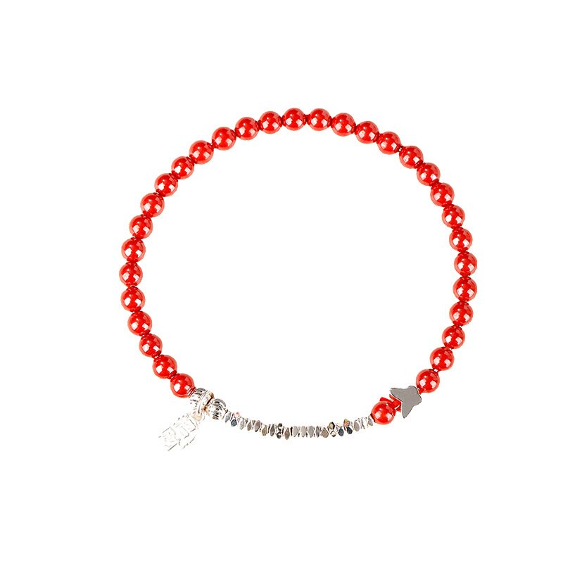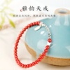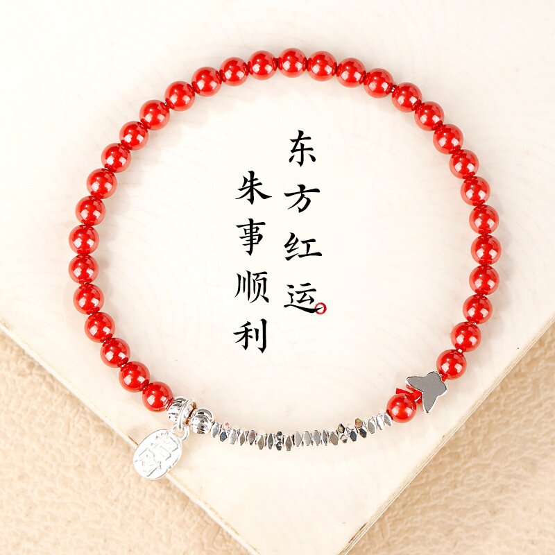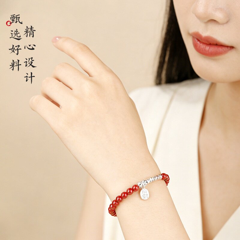 帝王砂纳福牌单圈手串天然朱砂碎银手链女生国风本命年红色手饰