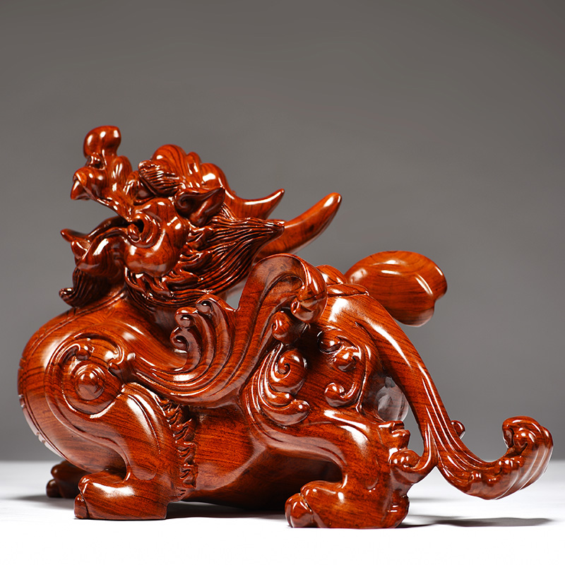 花梨木雕貔貅摆件实木大号一对客厅家居办公室装饰开业送礼工艺品