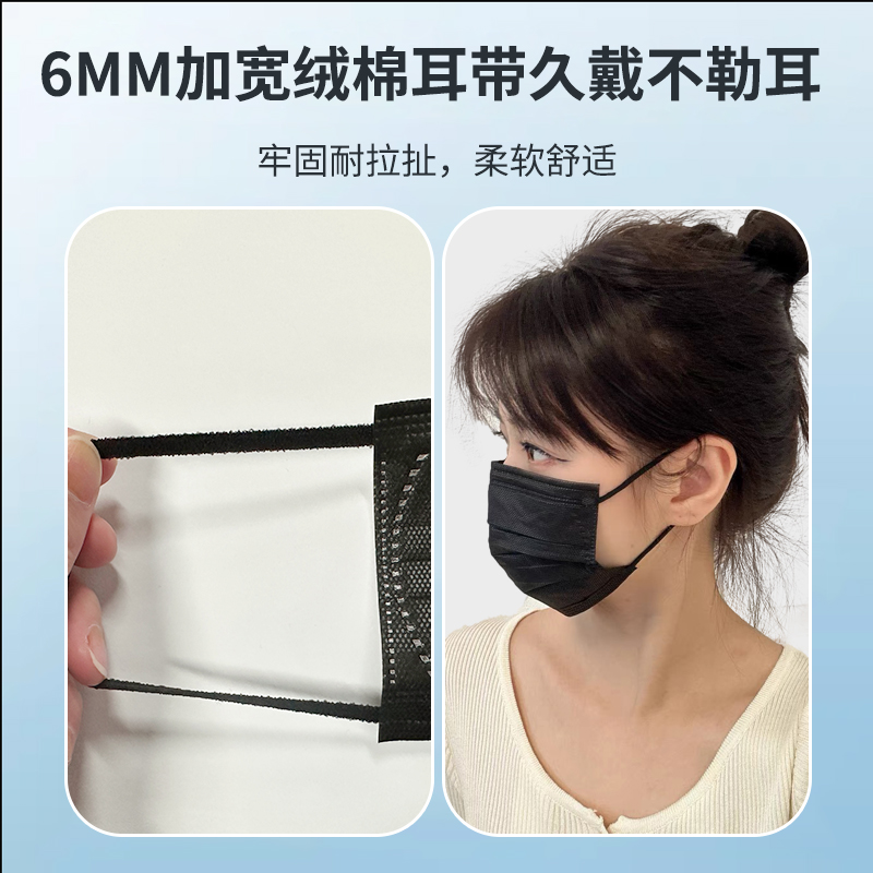 黑色口罩一次性医疗医用外科成人官方正品女高颜值男潮款单独包装