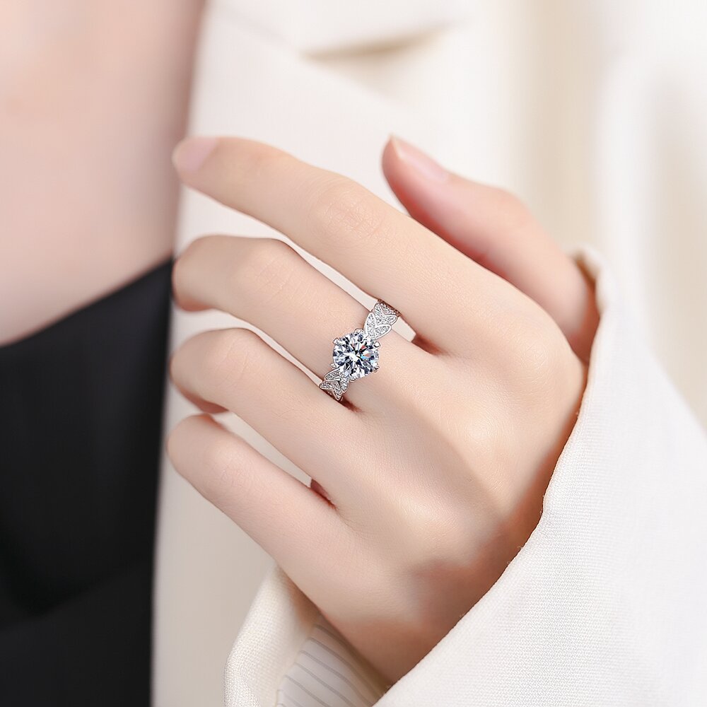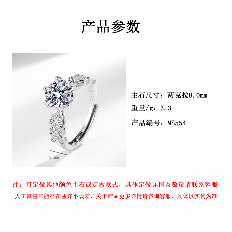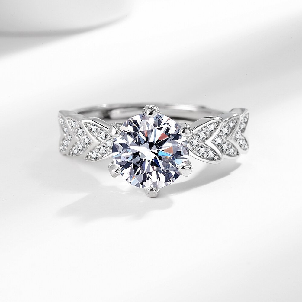 直播抖音爆款时尚2克拉八心八箭锆石戒指镀白金小众饰品珠宝首饰