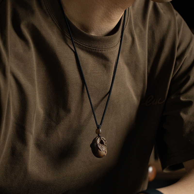 【店长设计】保真沉香木质复古挂坠金钱福袋编织吊坠送礼男女项链