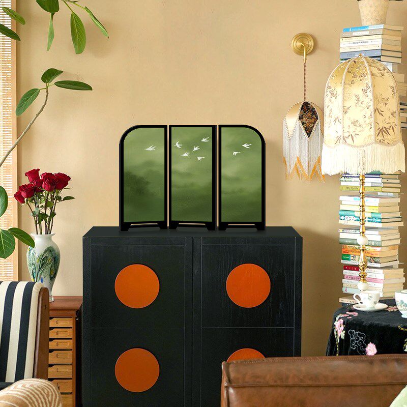 《归雁》桌面屏风摆件卧室布置绿色摆画法式餐厅餐边柜斗柜装饰画