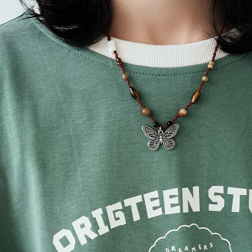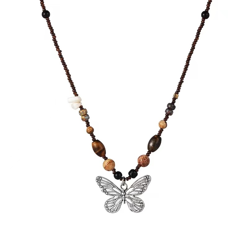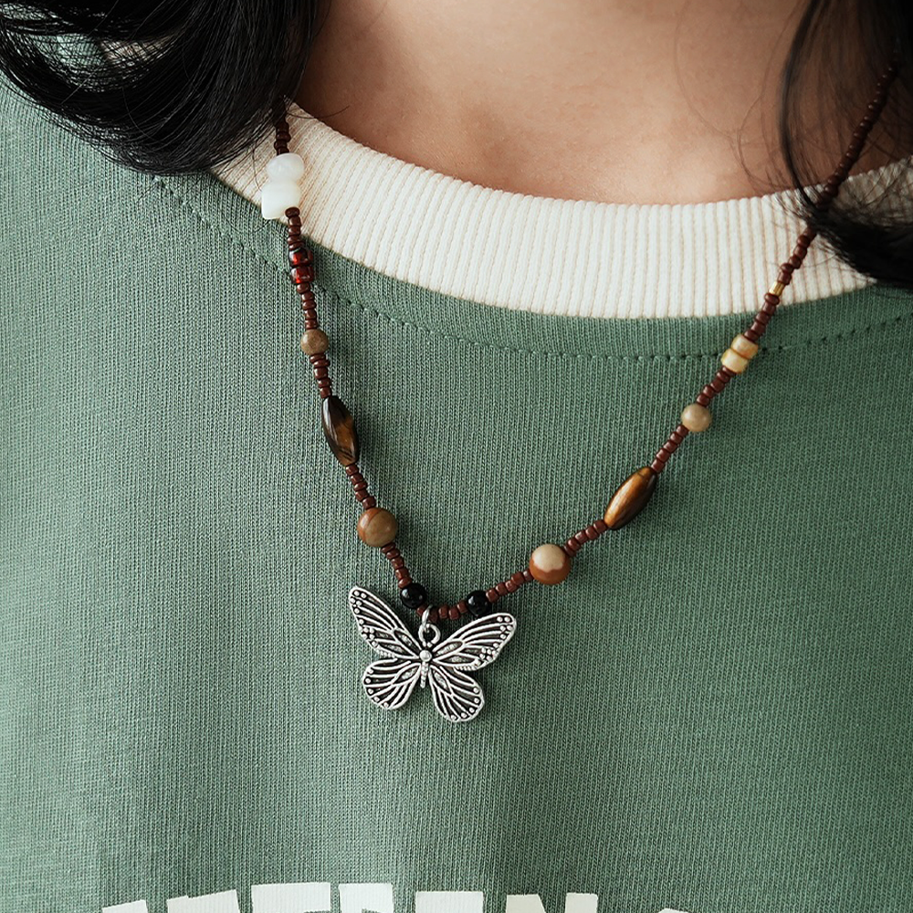 贰狸手作「小蝴蝶」原创手工锁骨链小众复古串珠设计感项链新中式
