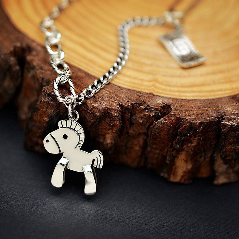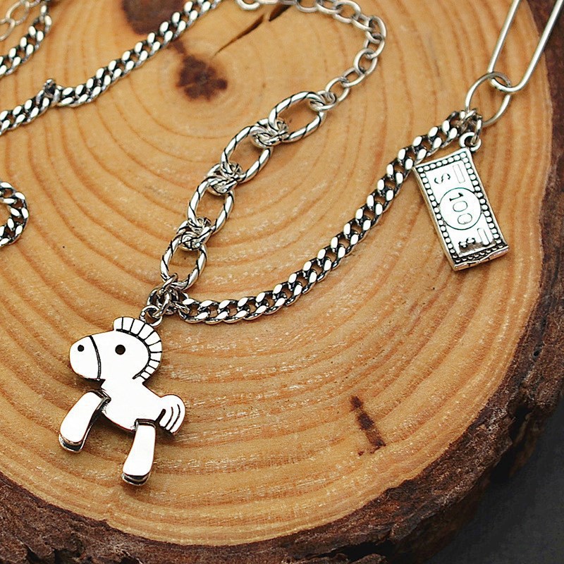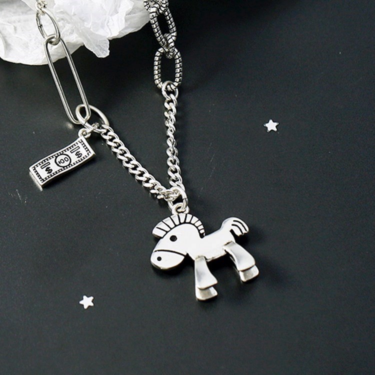 韩版东大门复古马上有钱项链女极简个性动物小马吊坠锁骨项链