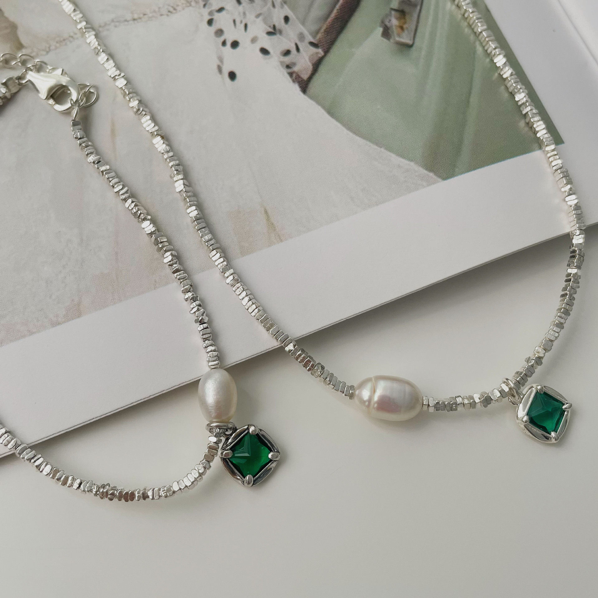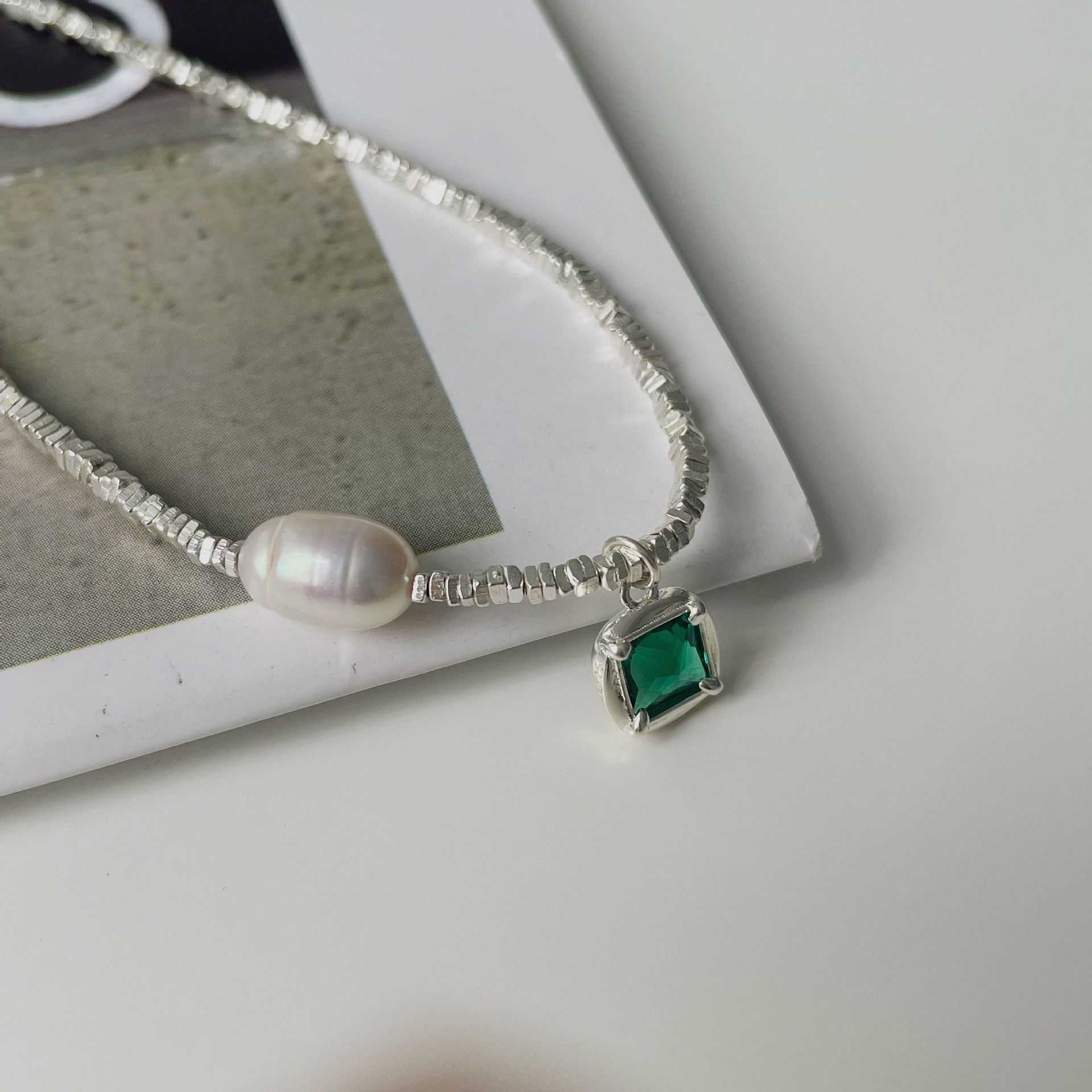 s925纯银绿立锆项链女碎银子锁骨链手链吊坠ins小众轻奢高级感潮