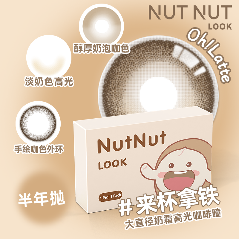 【来杯拿铁】坚果力半年抛美瞳2片大直径淡奶高光咖啡色小鹿眼