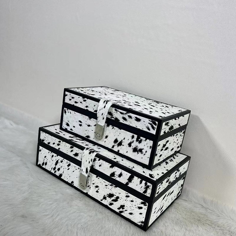 现代轻奢创意马毛斑点纹收纳盒摆件样板间售楼处客厅卧室装饰盒