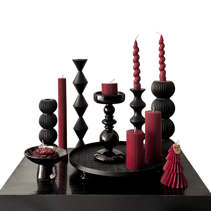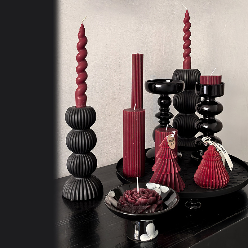 态生活 复古风黑色烛台客厅餐桌过年喜庆氛围感 装饰蜡烛烛台摆件