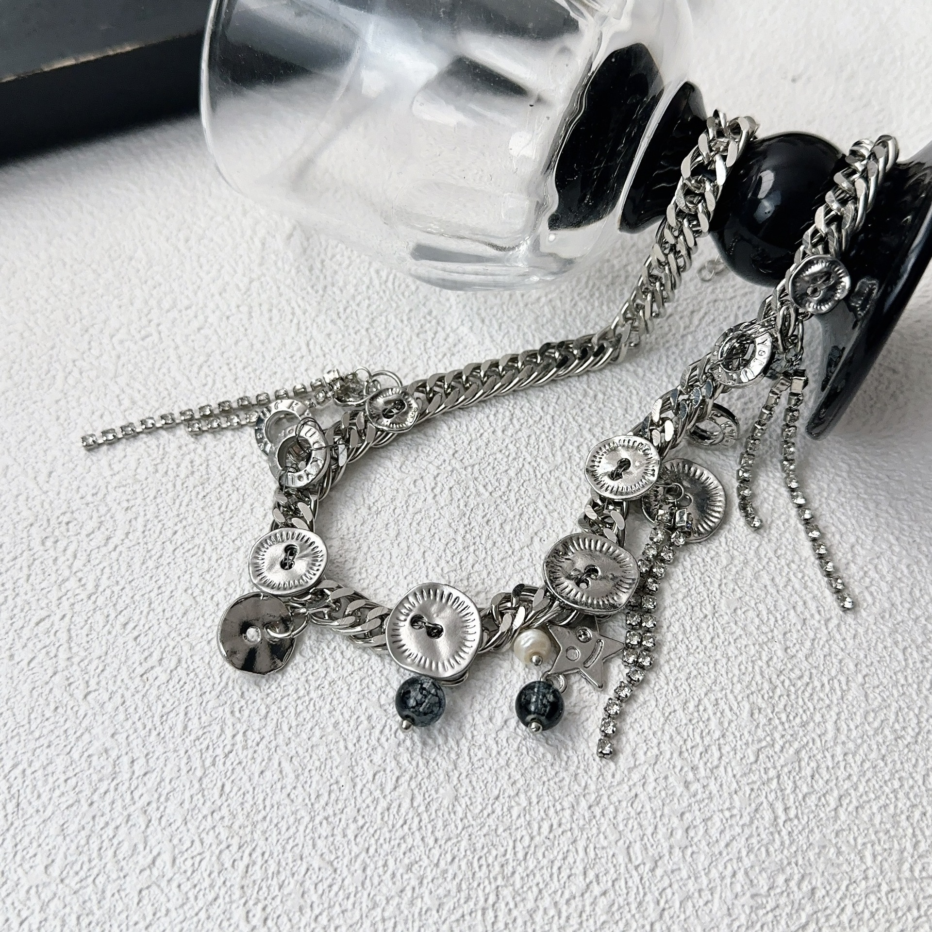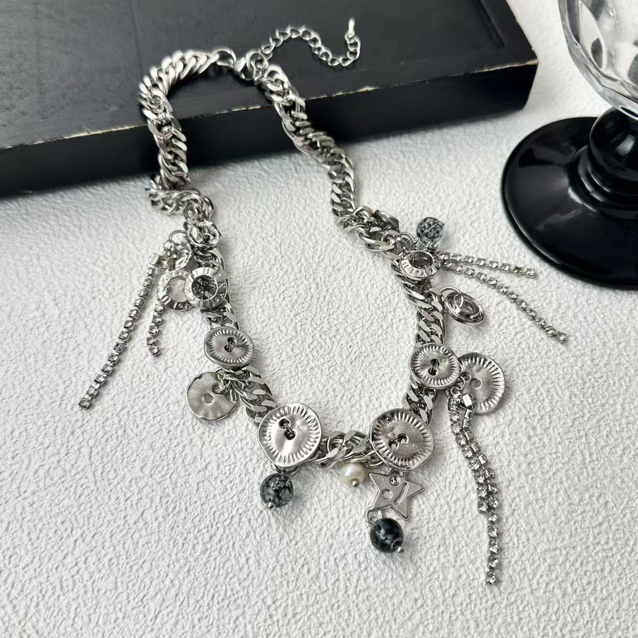 复古纽扣个性项链女小众设计感甜酷锁骨链简约潮流洋气颈链潮配饰
