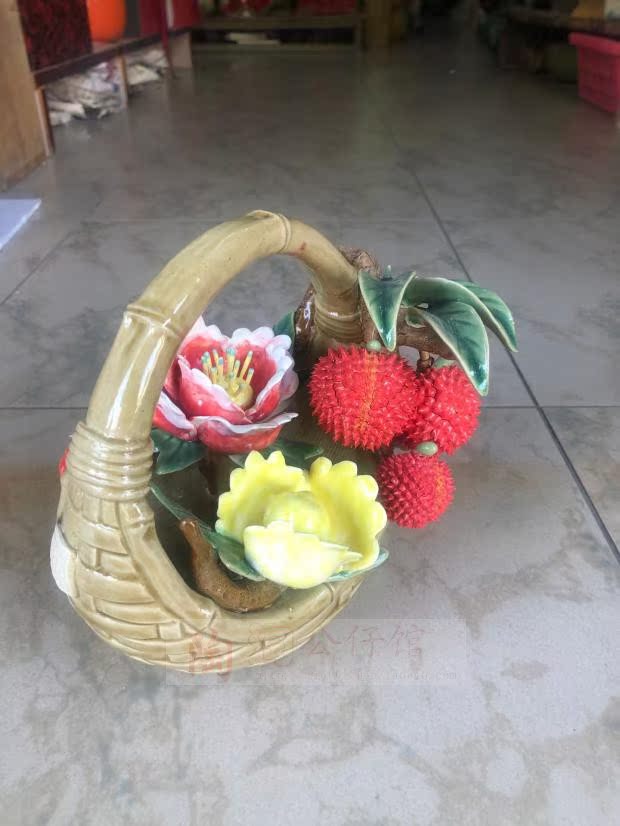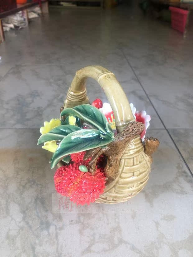 陶瓷工艺品石湾公仔家居装饰品礼品办公桌面小摆件鲜花荔枝篮促销
