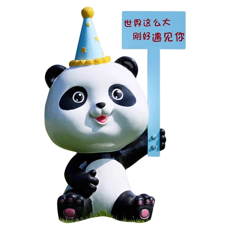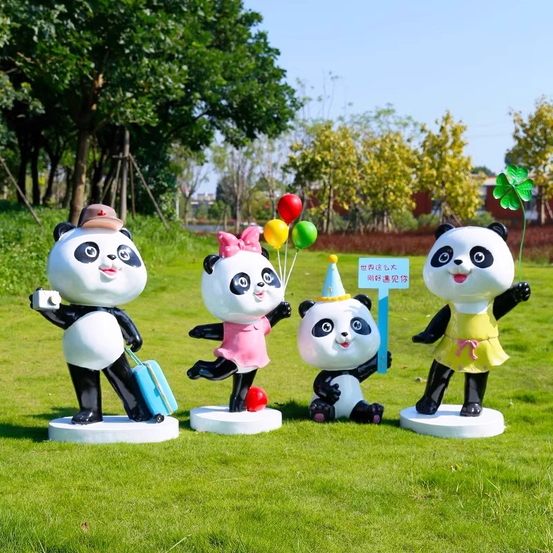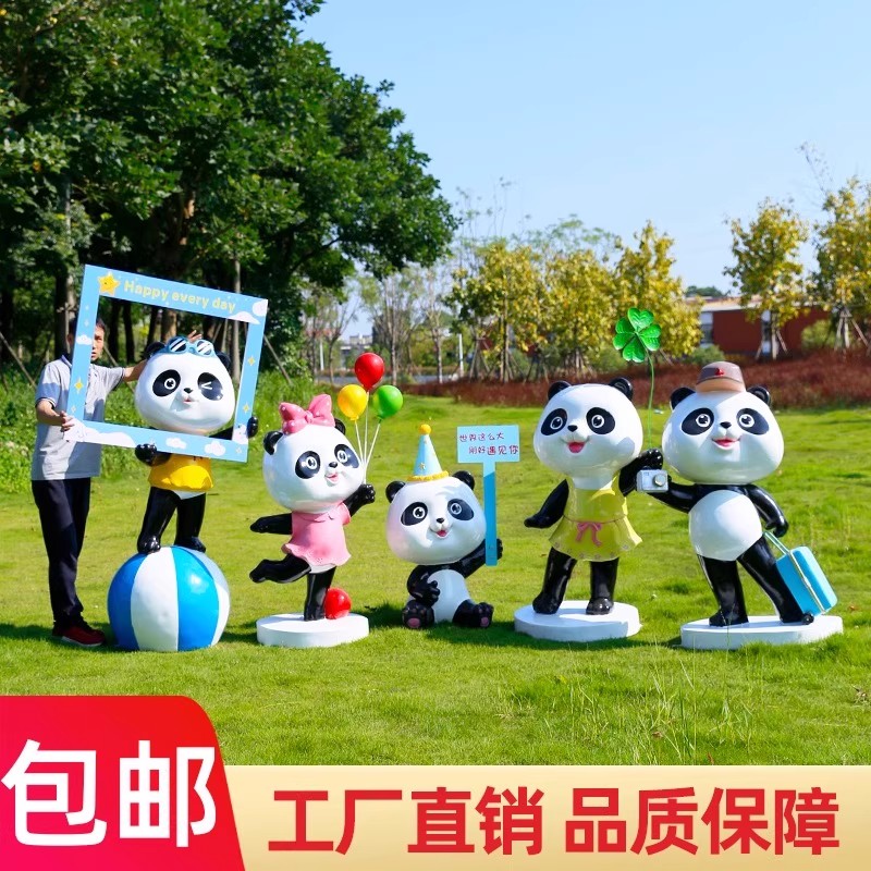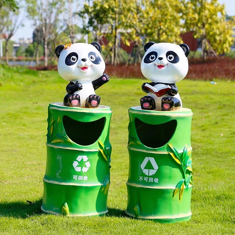 卡通熊猫雕塑玻璃钢户外商场步行拍照打卡环保垃圾桶美陈装饰摆件