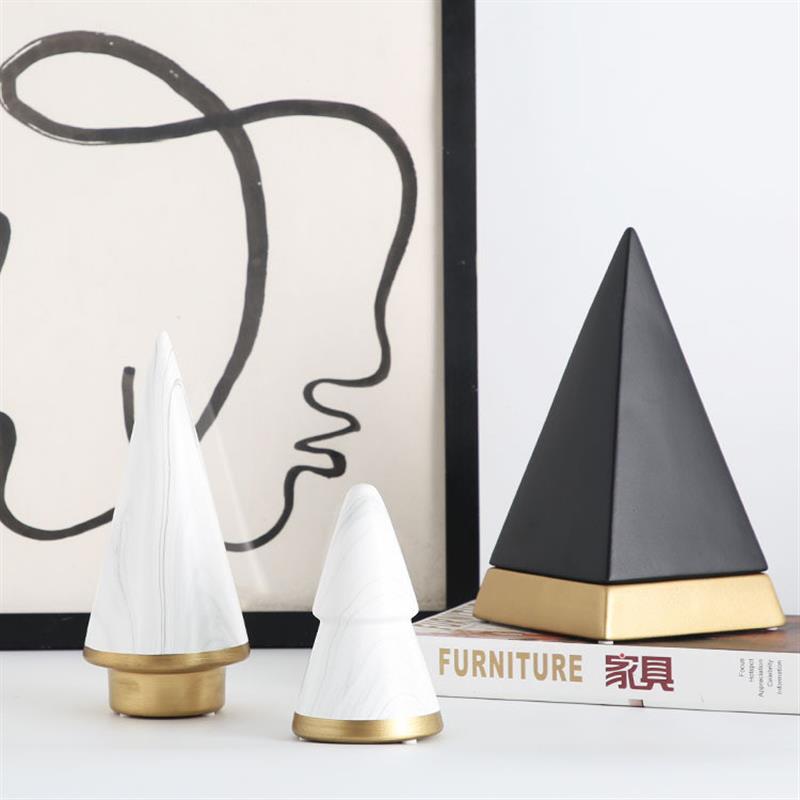 金色大理石纹金字塔陶瓷摆件北欧几何石头装饰品房间玄关轻奢摆设