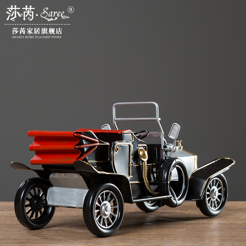 复古怀旧老爷车模型汽车摆件家居客厅玄关软装饰T品酒吧咖啡厅摆