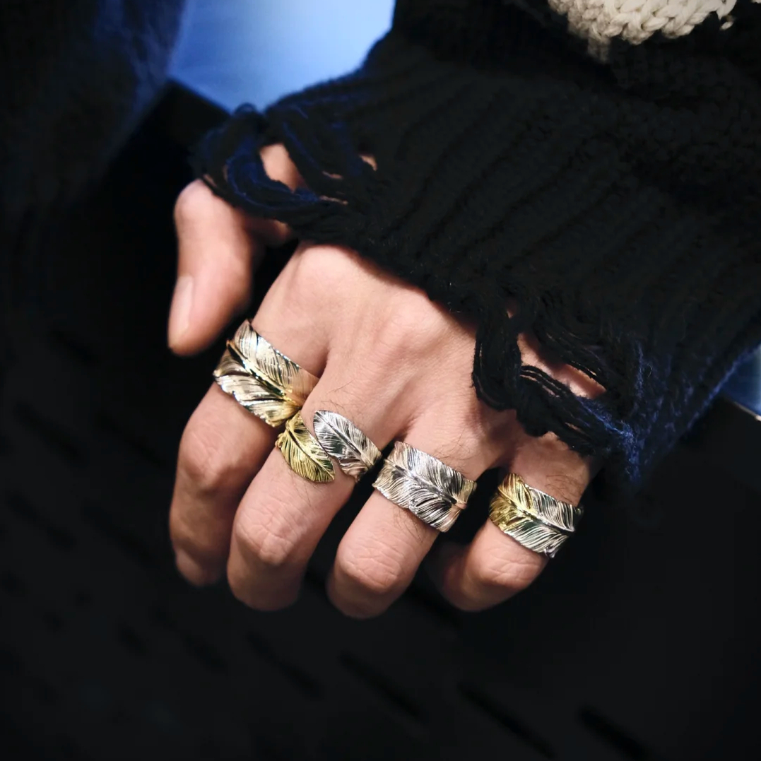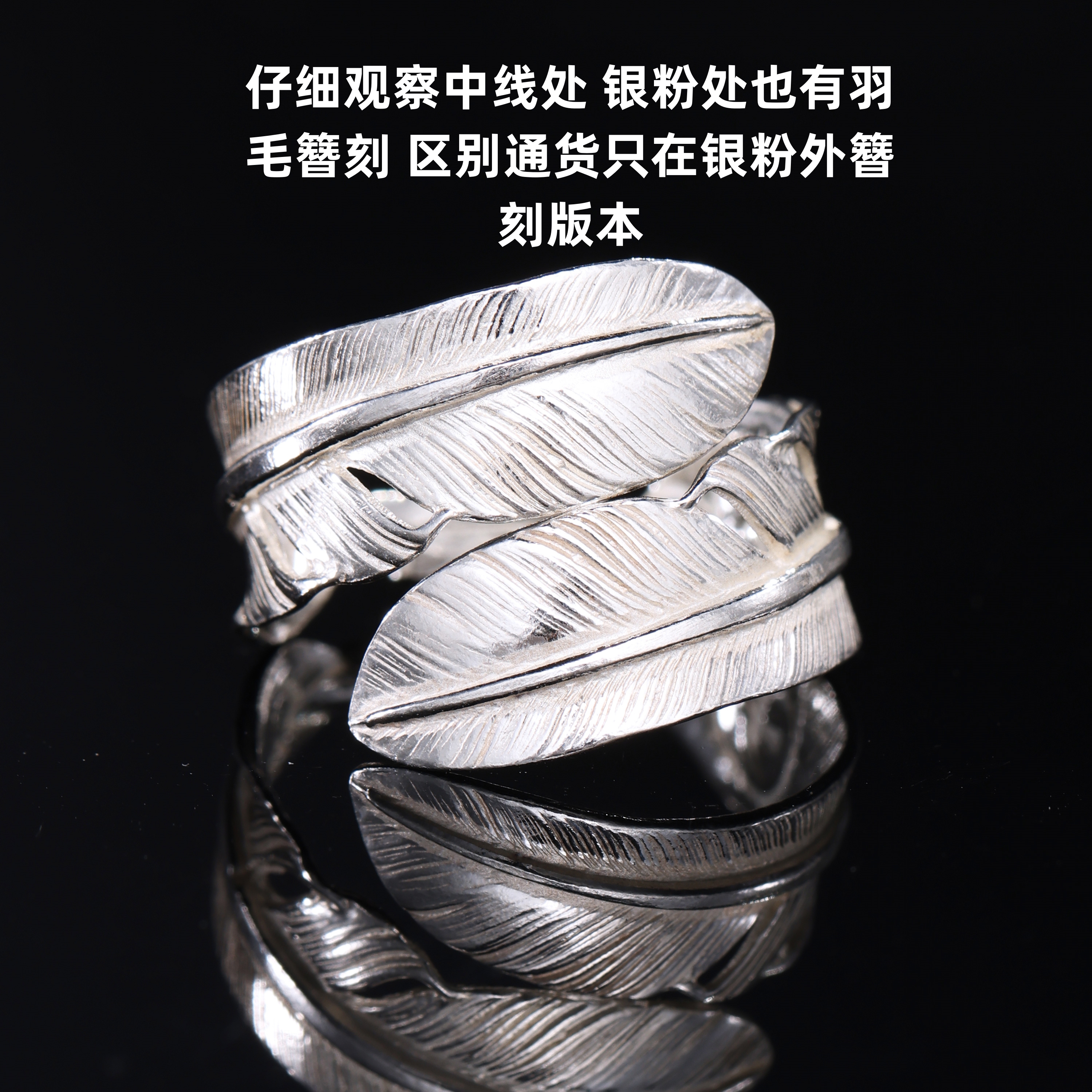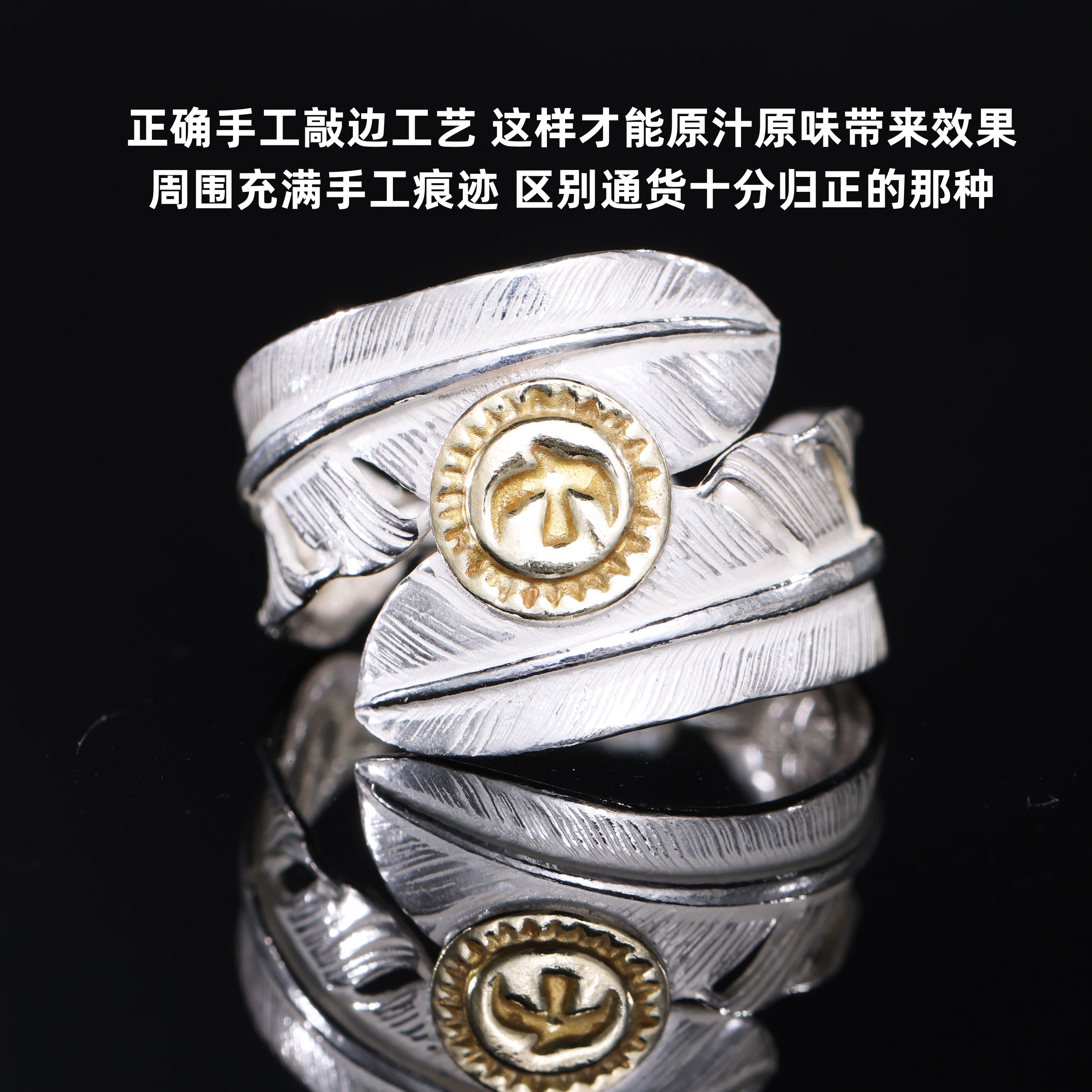 古高桥吾郎潮双羽毛戒指开口男女情侣925银手工复古个性潮流飞鹰