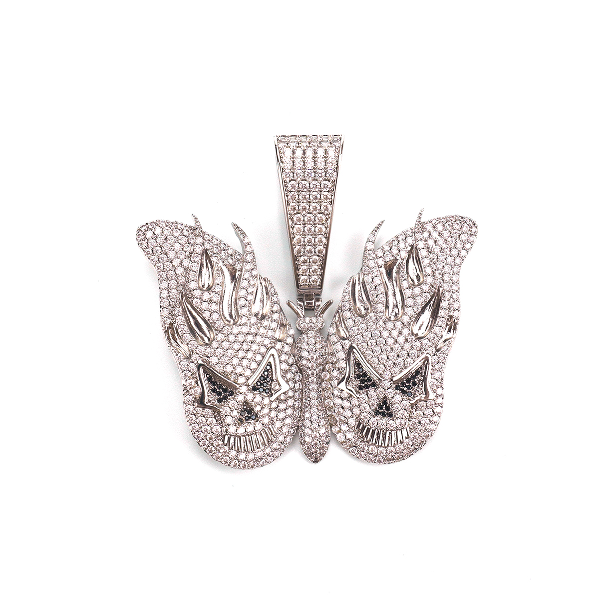 LFL欧美嘻哈饰品 满钻锆石火焰骷髅蝴蝶大吊坠 可穿古巴项链配饰