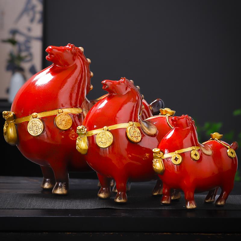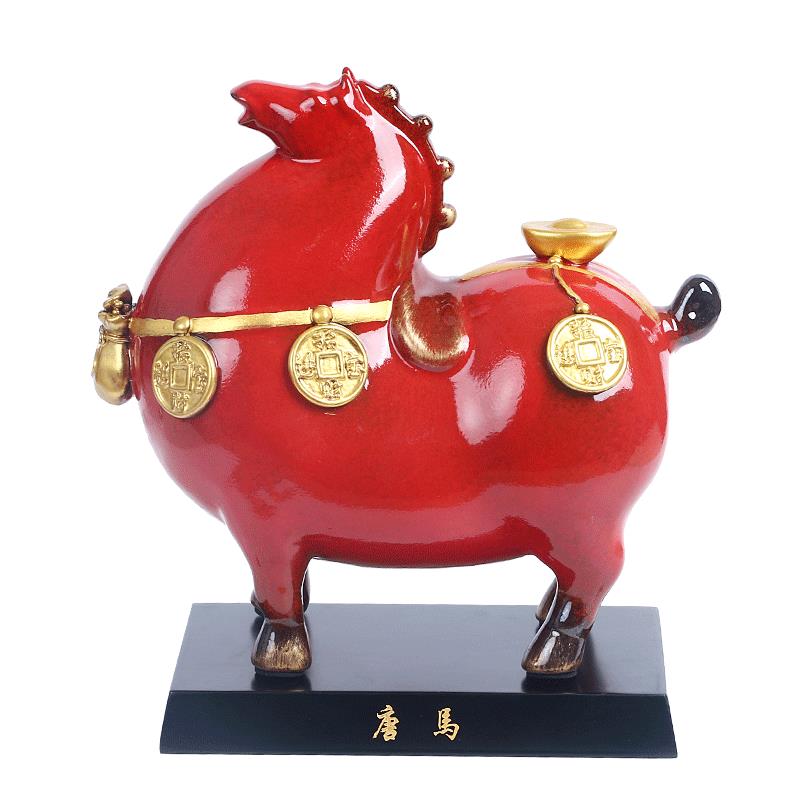 马上有钱陶瓷唐马摆件办公室客厅桌面装饰招财红色马摆设工艺礼品