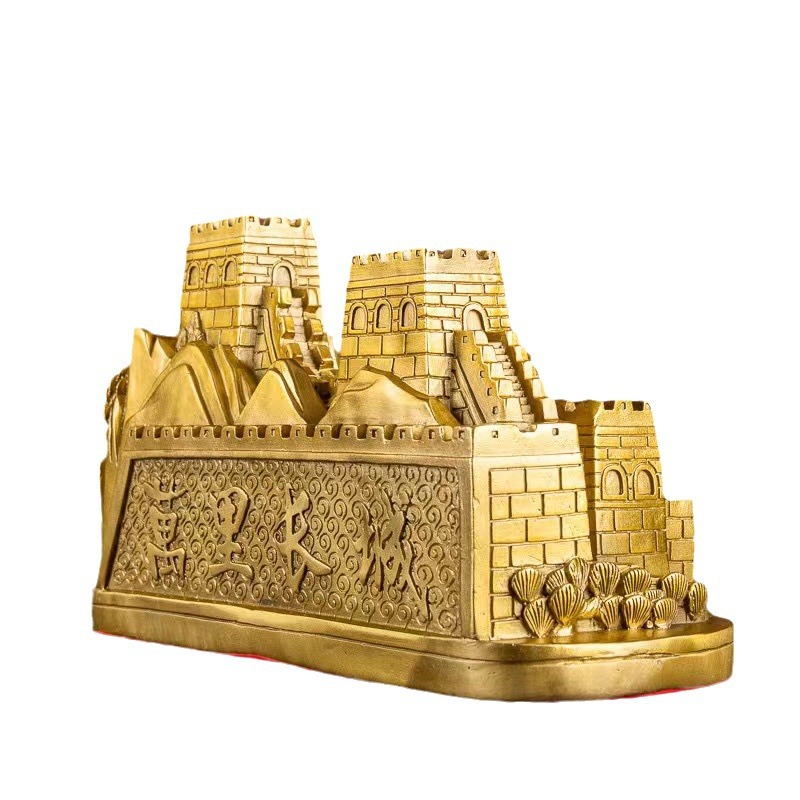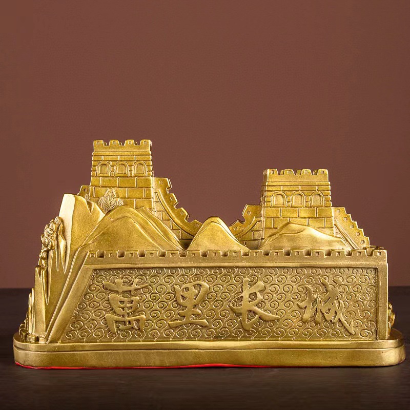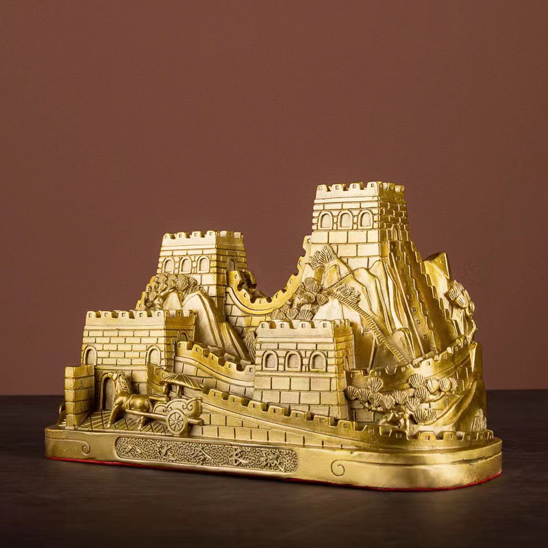 纯黄铜万里长城摆件八达岭长城模型办公室装饰品金色背有靠山客厅