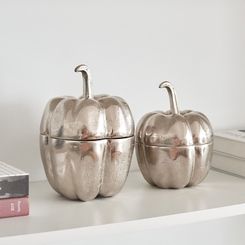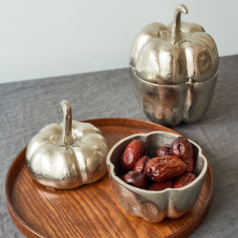 进口铝制复古银色金属花生核桃杏仁造型摆件南瓜收纳首饰盒装饰品