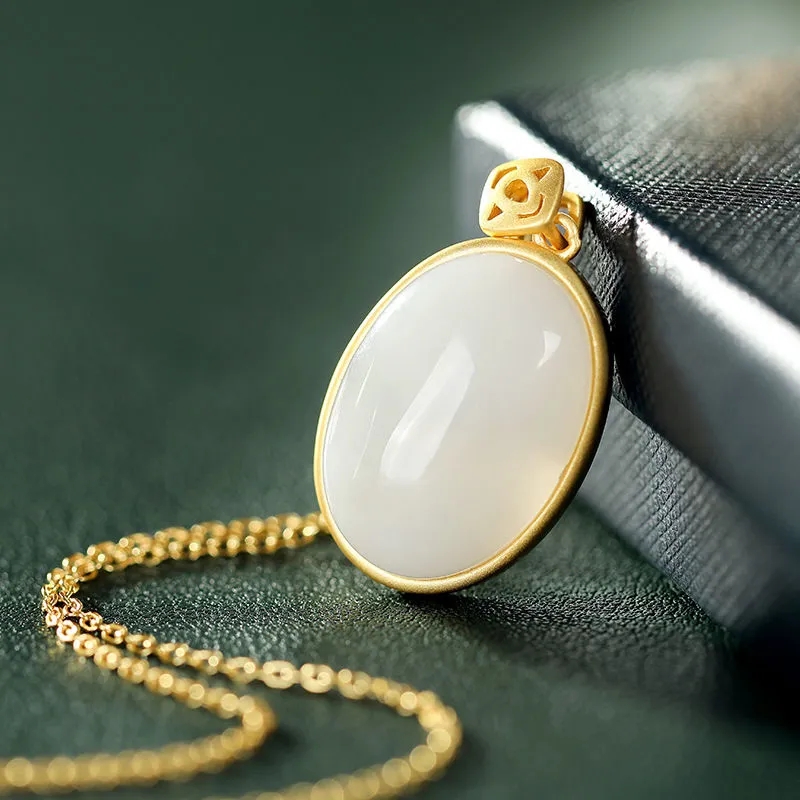S925纯银复古宫廷风蛋面无事牌吊坠女士简约椭圆几何精致优雅项链