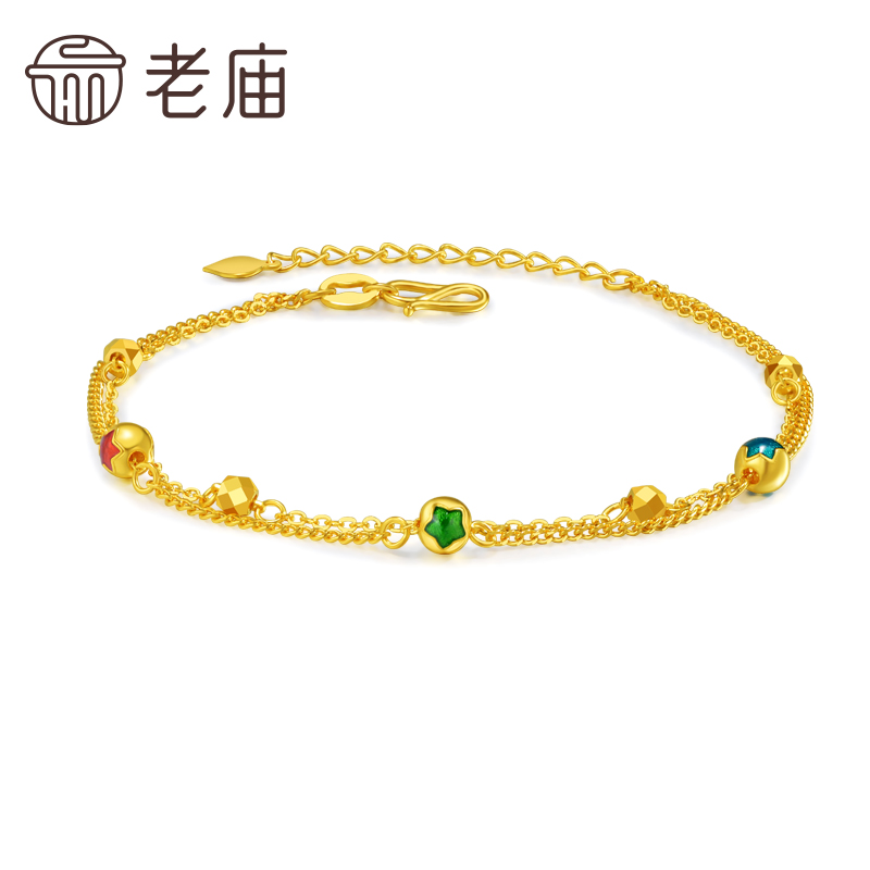 老庙黄金足金鎏彩星星手链5G工艺时尚精致悦己甄品星辰闪耀百搭