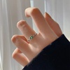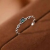 925纯银小方糖戒指女小众设计时尚绿色复古可调节方块食指戒指环