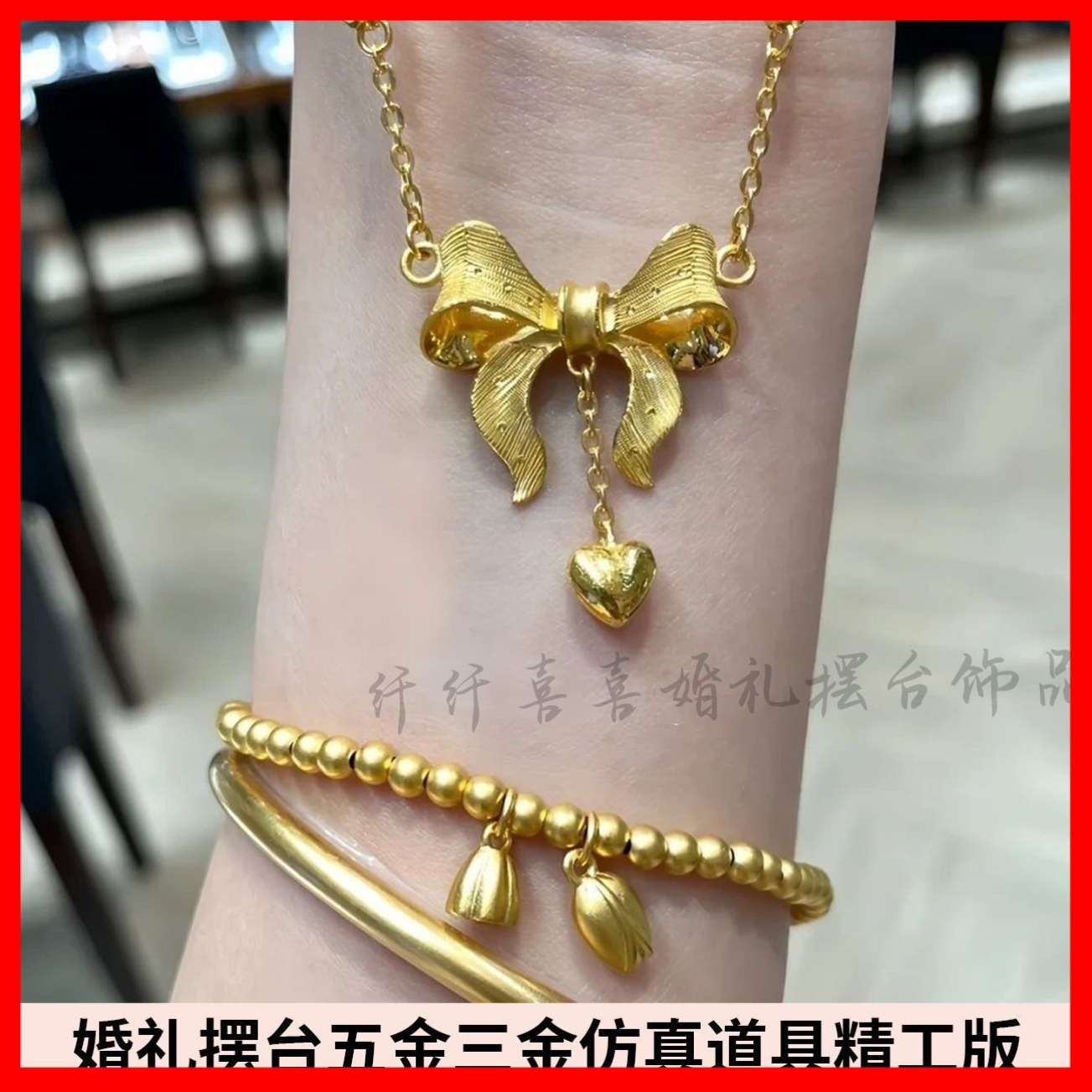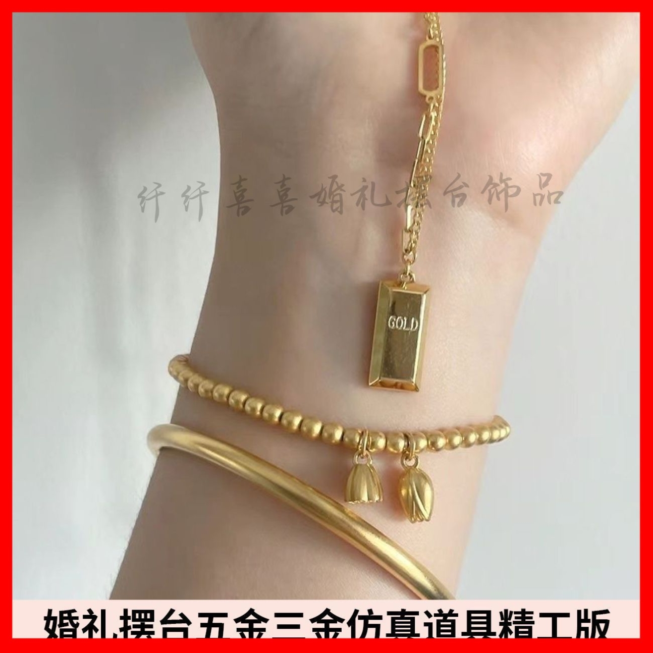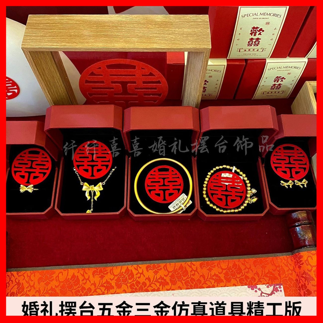 五金首饰结婚仿真婚礼摆台五金三金全套仿真道具结婚订婚中国风甜