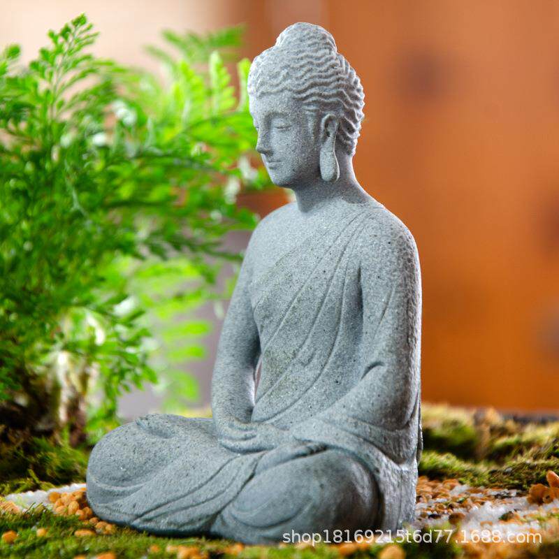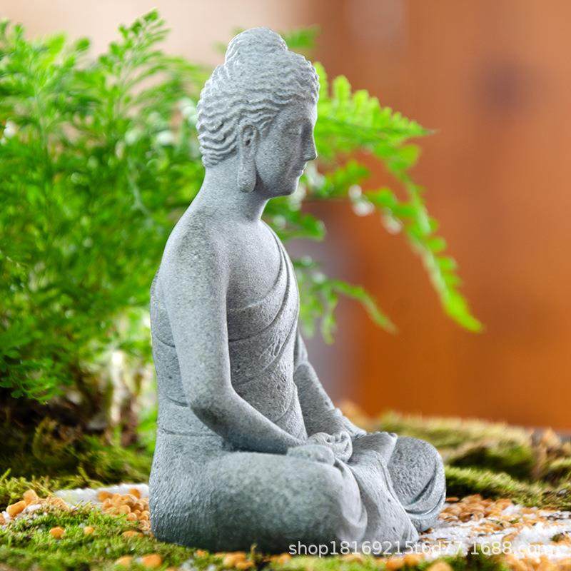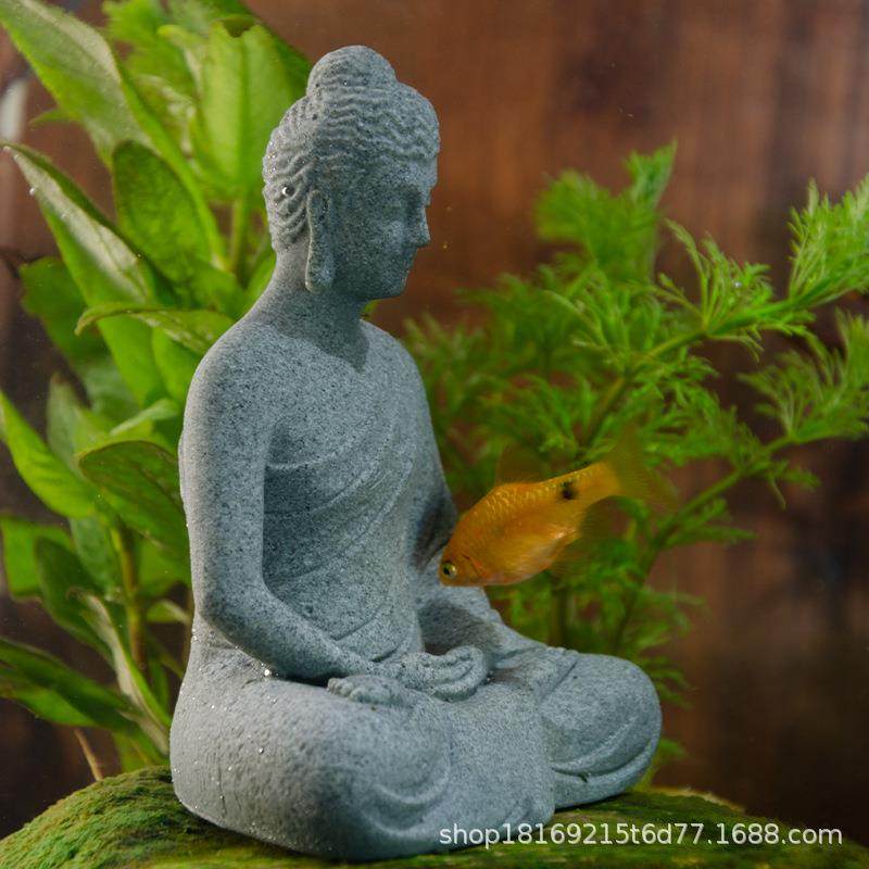 禅定佛像摆件鱼缸吸水石头假山盆景流水人物微景观装饰造景小摆件