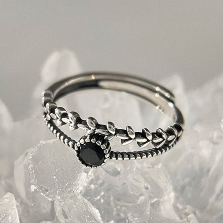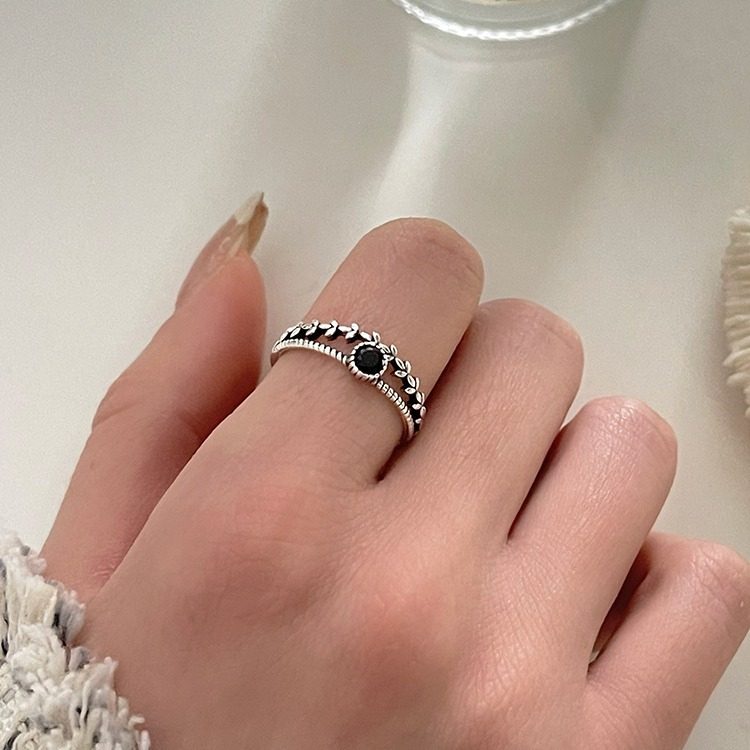 复古双层麻花黑色锆石戒指女ins小众设计开口指环时尚个性潮食指