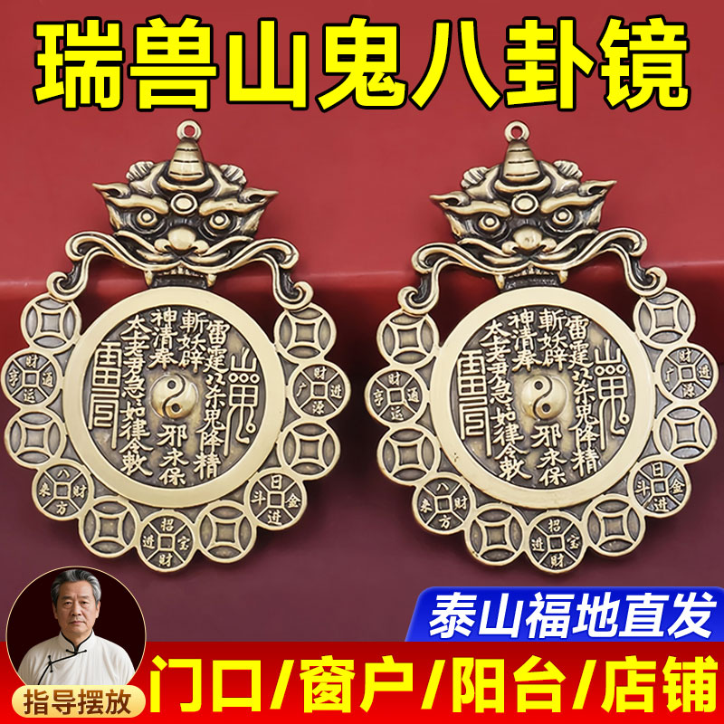 瑞兽山鬼花钱八卦镜纯黄铜牌挂件自家大门对大门窗对墙角室内外用