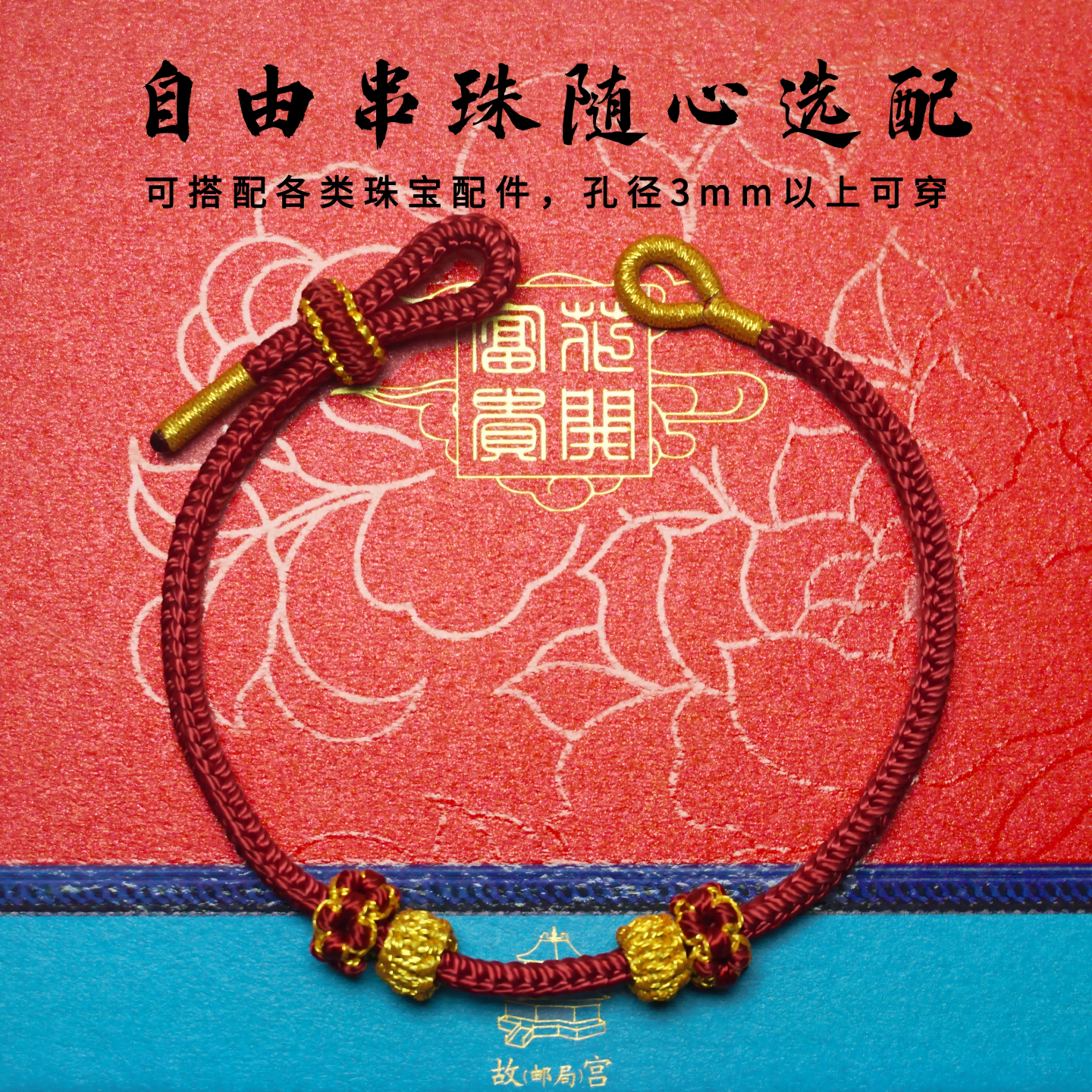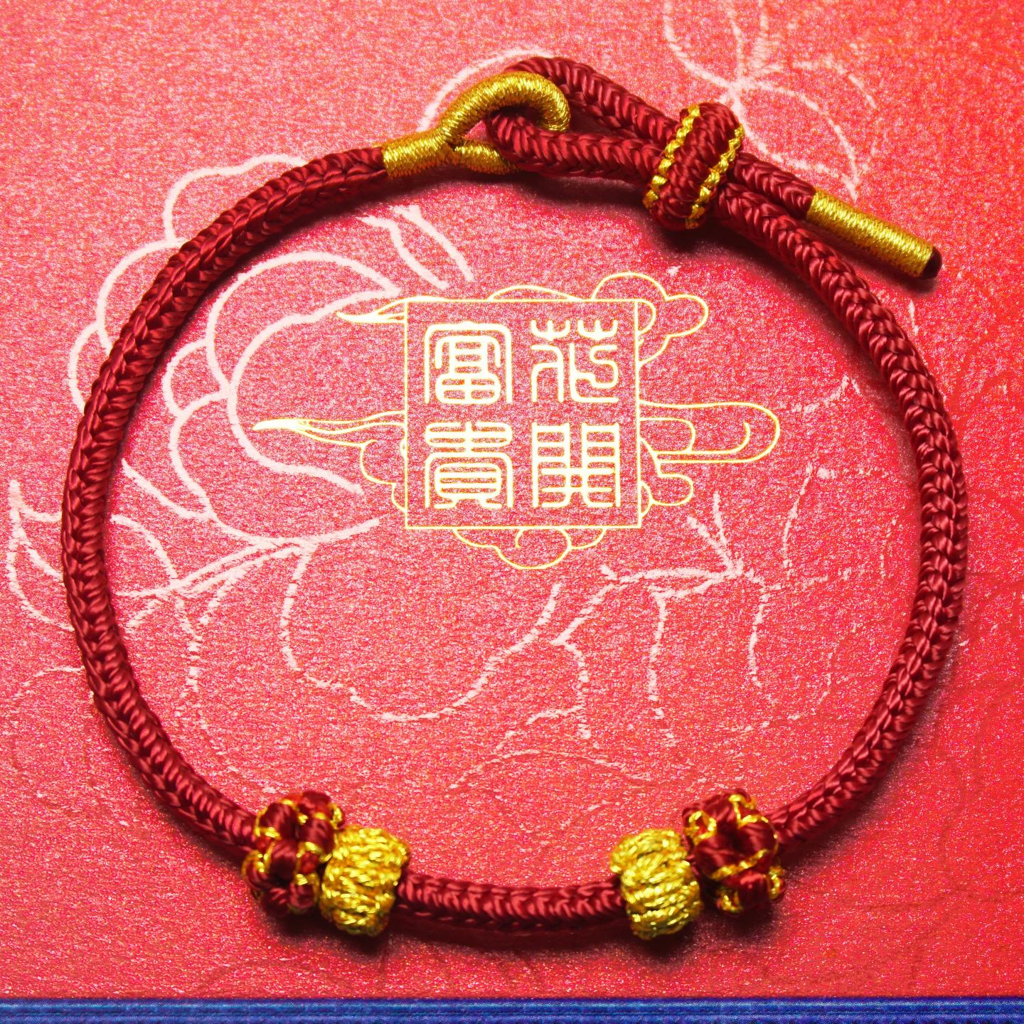 鸿运 周家大福同款本命年金红色8股编绳diy转运珠可调编织红手绳