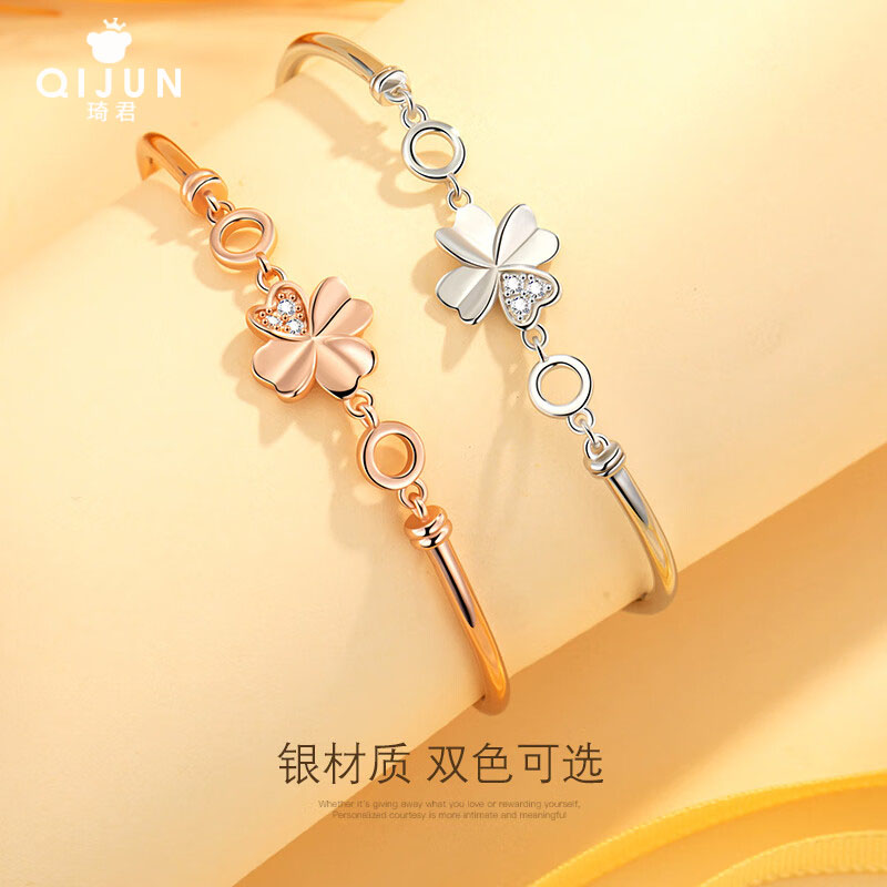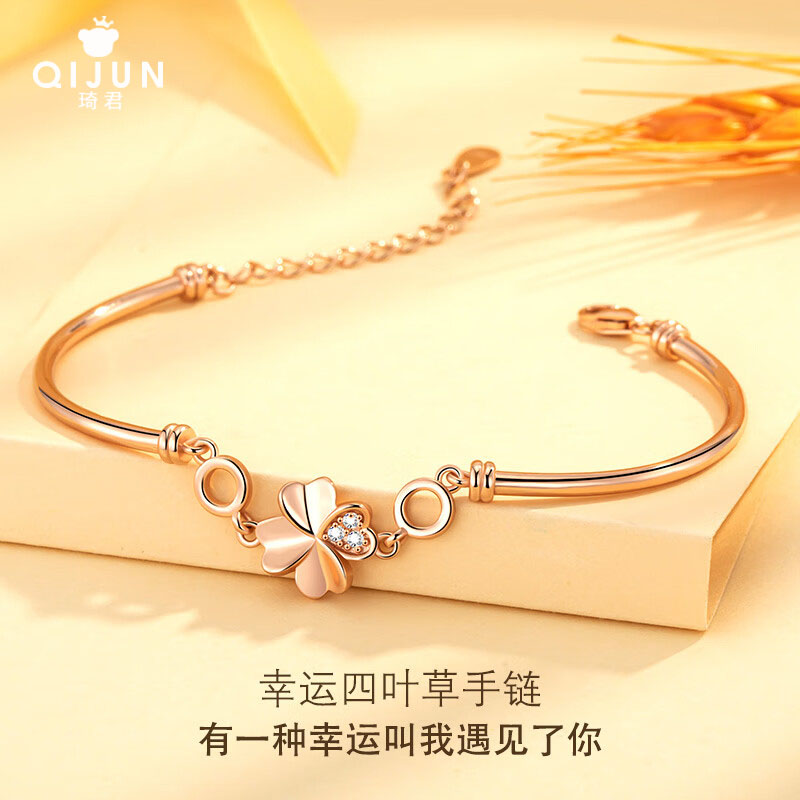 琦君四叶草手链S925银百搭刻字小众设计高级感生日七夕礼物送女友