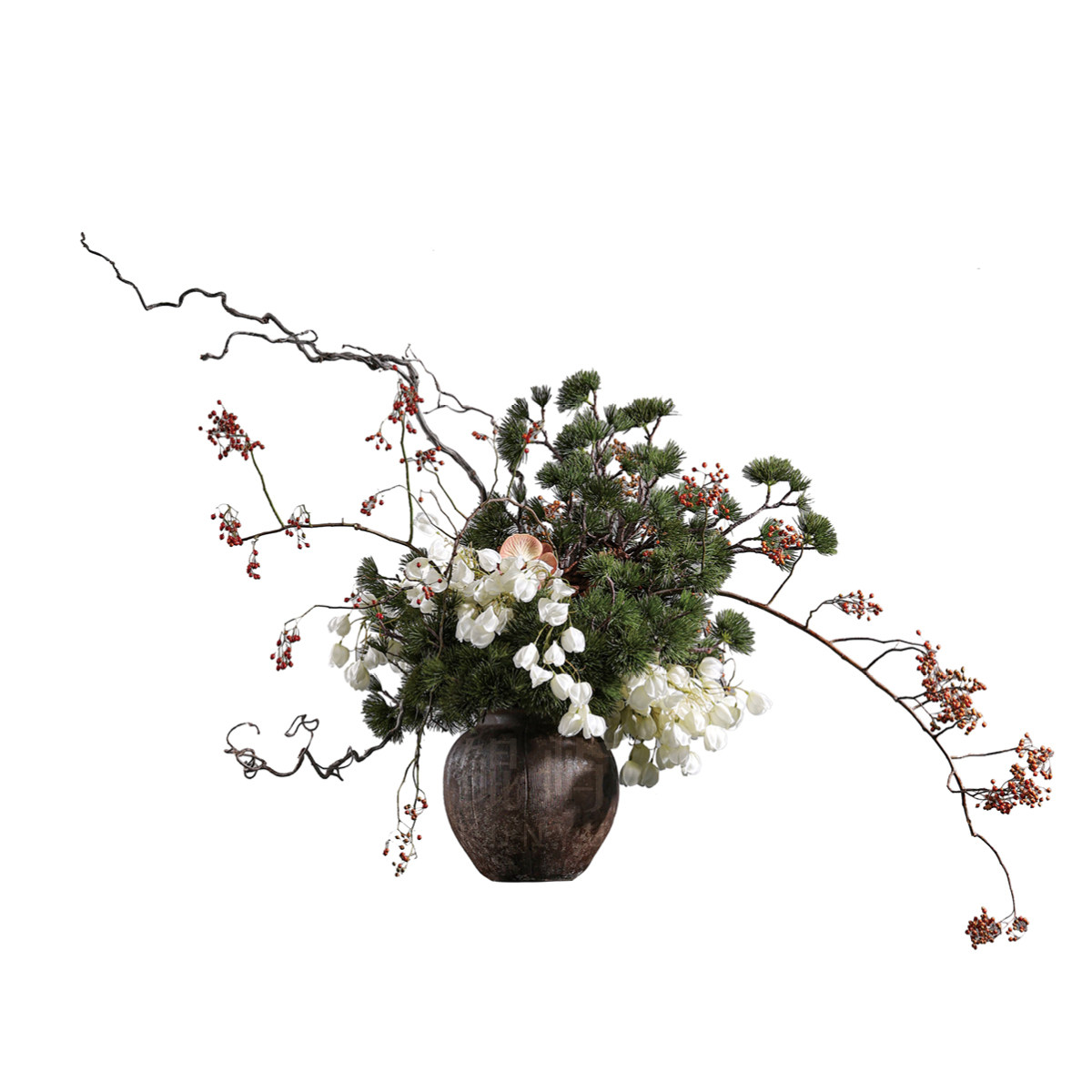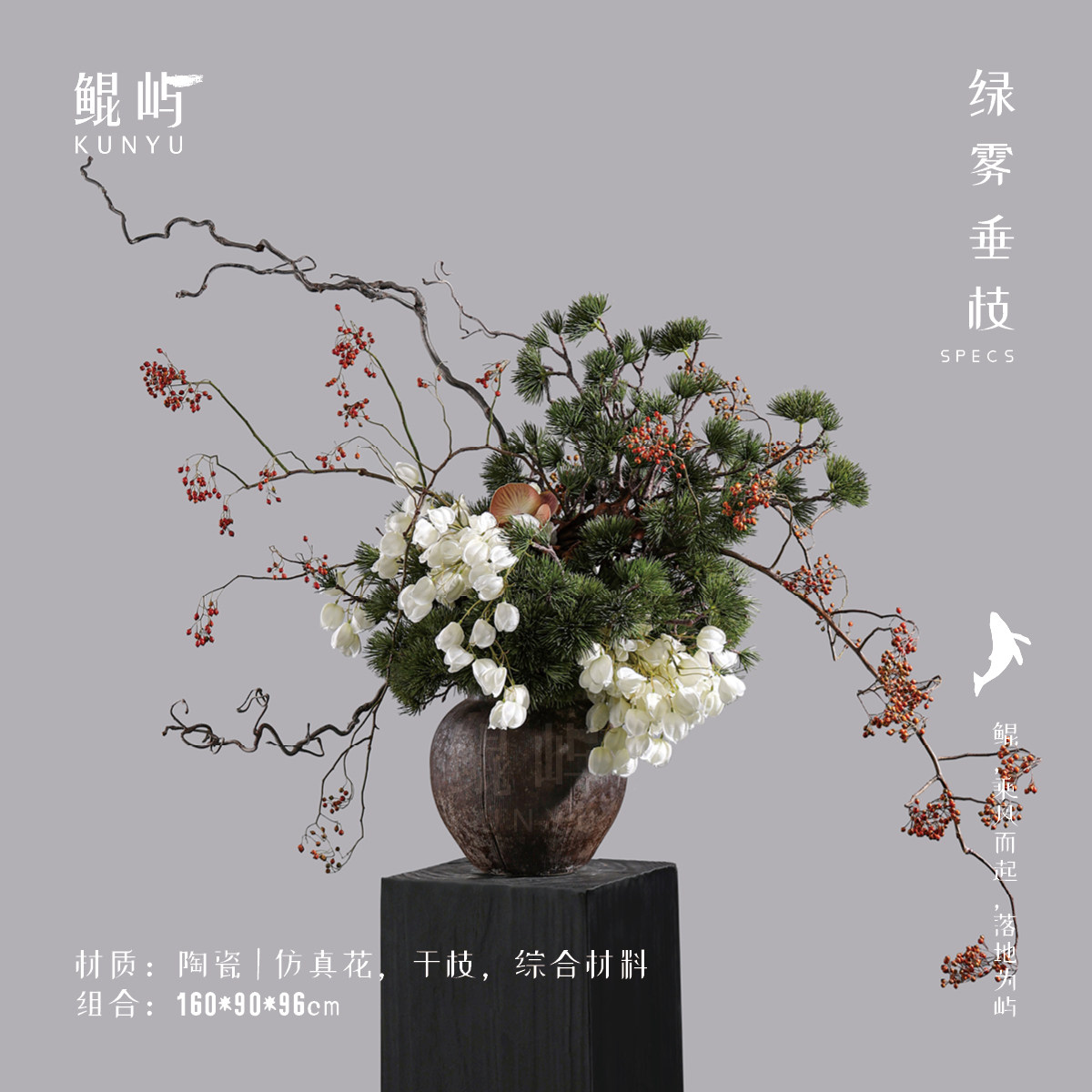 鲲屿 中式宋韵陶瓷花器干枝摆件 民宿酒店别墅玄关禅意软装饰品