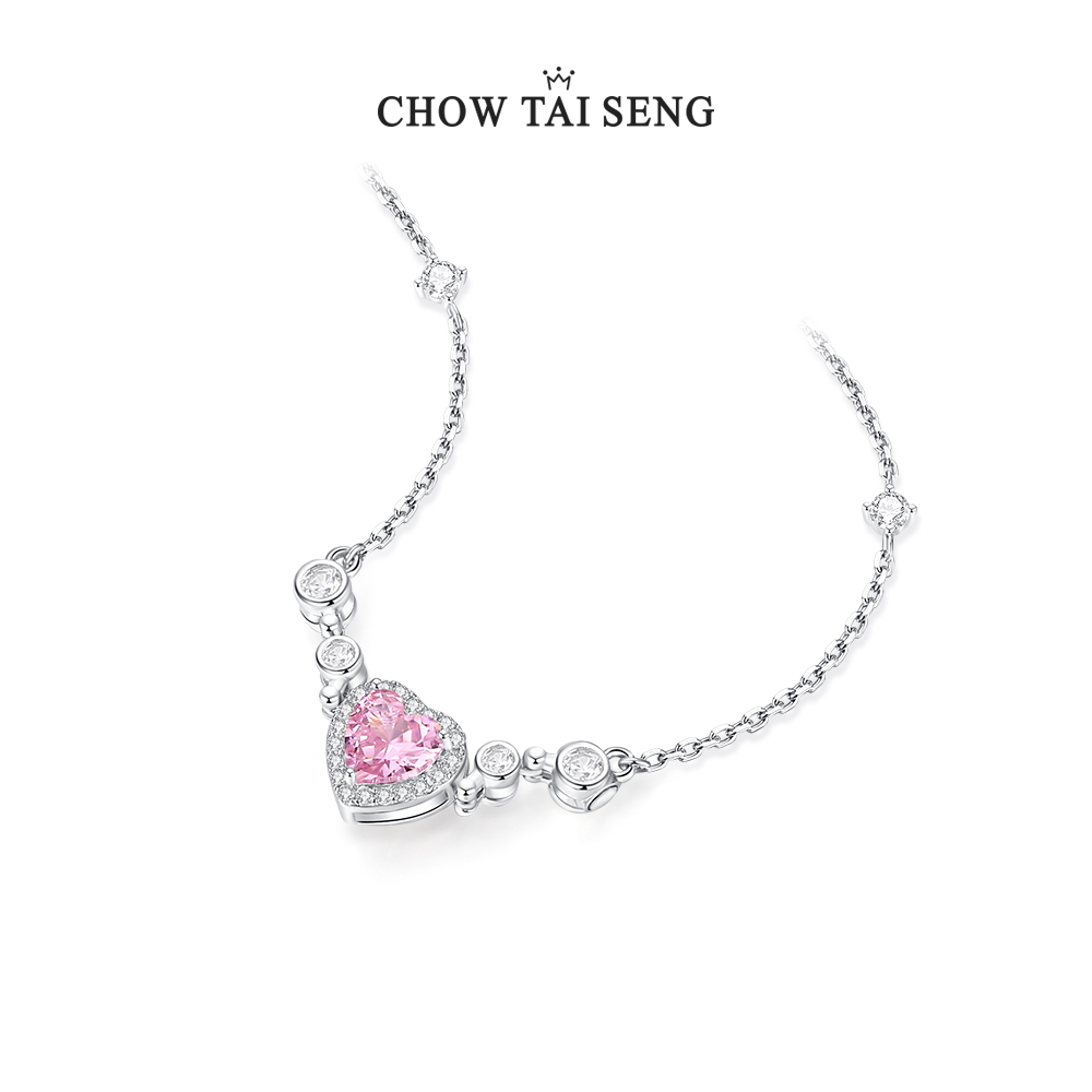 周大生猫爪爱心项链女925银高级感锁骨链一款多戴生日礼物送女友
