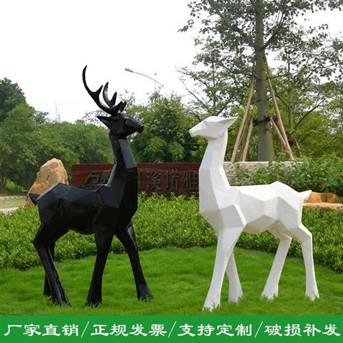 玻璃钢抽象白色小鹿雕塑房地产营销中心园林草坪装饰品块面鹿摆件