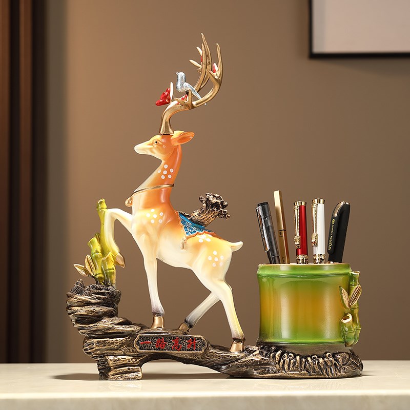 一鹿高升创意招财鹿笔筒装饰品书房桌面办公室收纳文具摆件送礼品