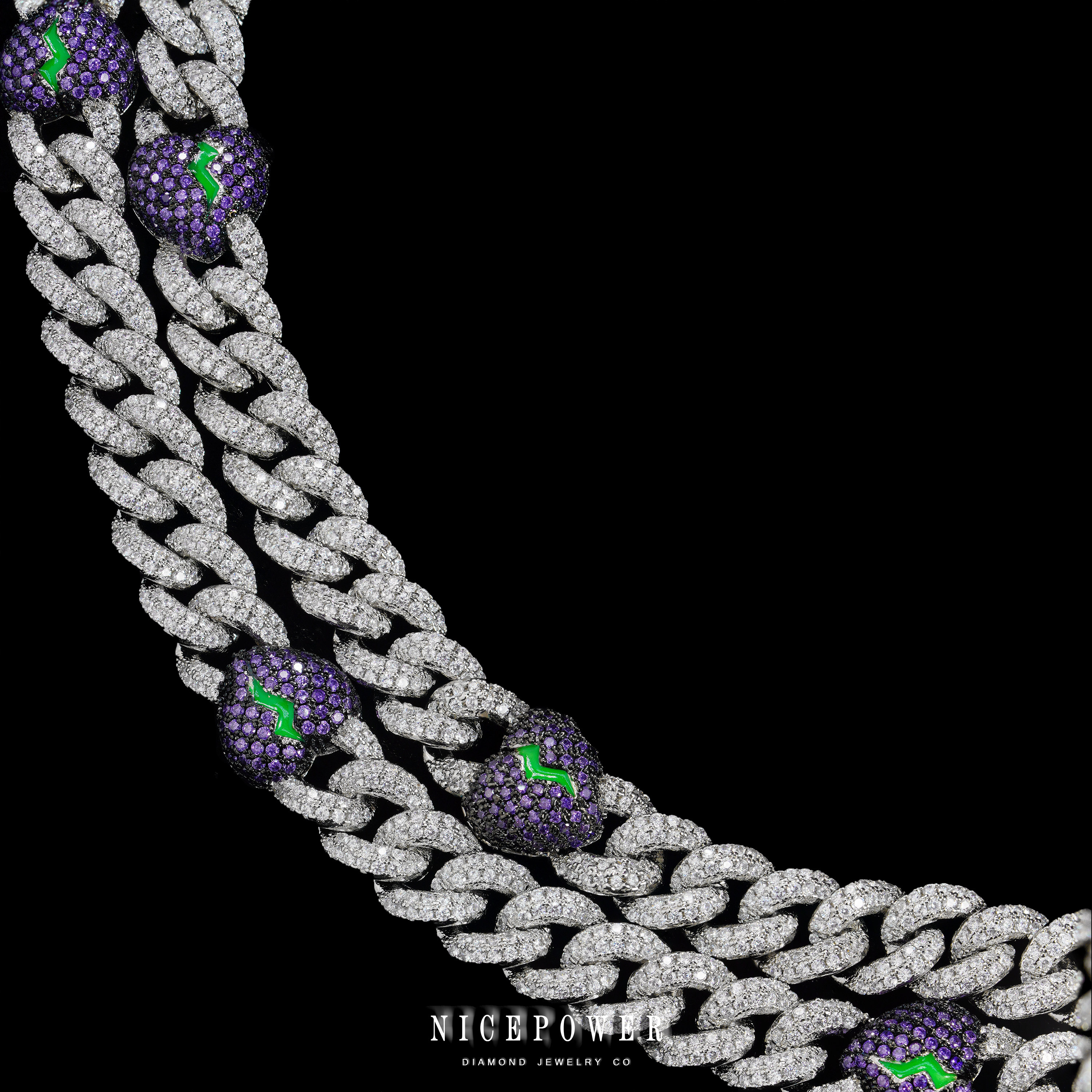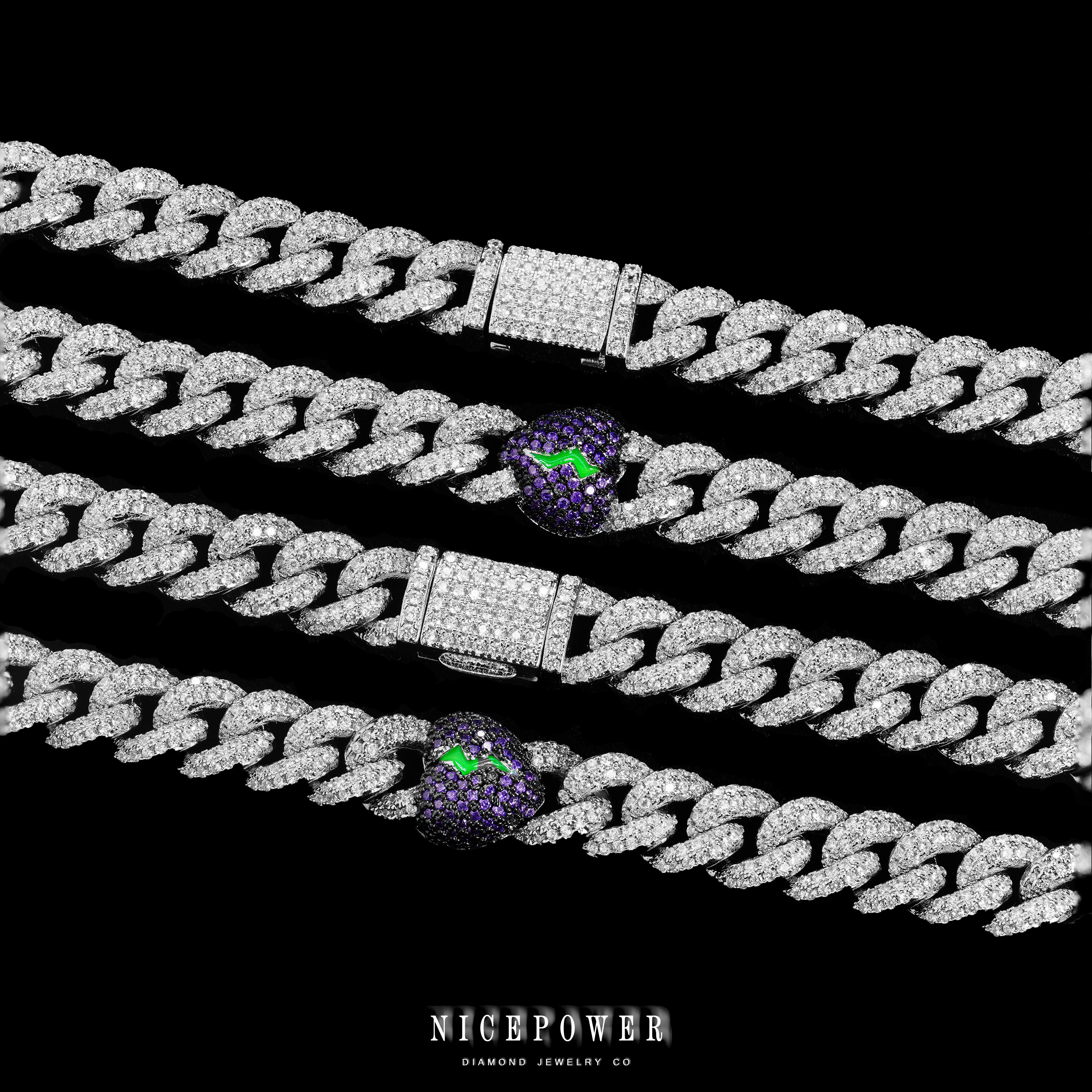 NICEPOWER 9mm紫色心碎夜光古巴链 欧美嘻哈风