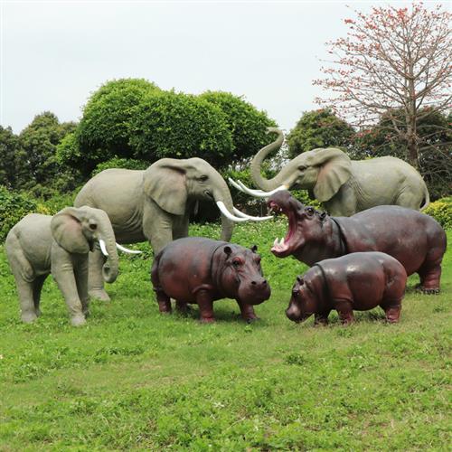 玻璃钢仿真大象骆驼河马雕塑户外园林景观大型动物摆件公园装饰品
