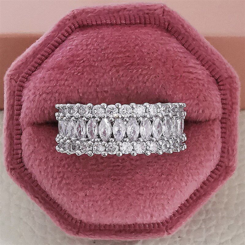 跨境shein新款 热卖多排奢华锆石镶D嵌满钻 素圈女永恒之戒指r557