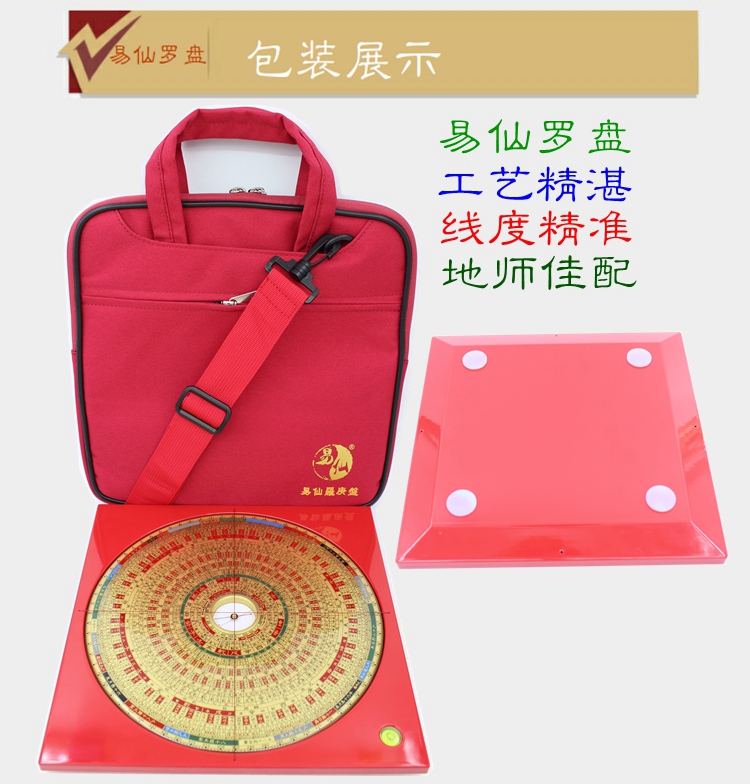 易仙强磁针8寸6三合25层罗盘九星精准指针红色电木罗庚盘中式摆件