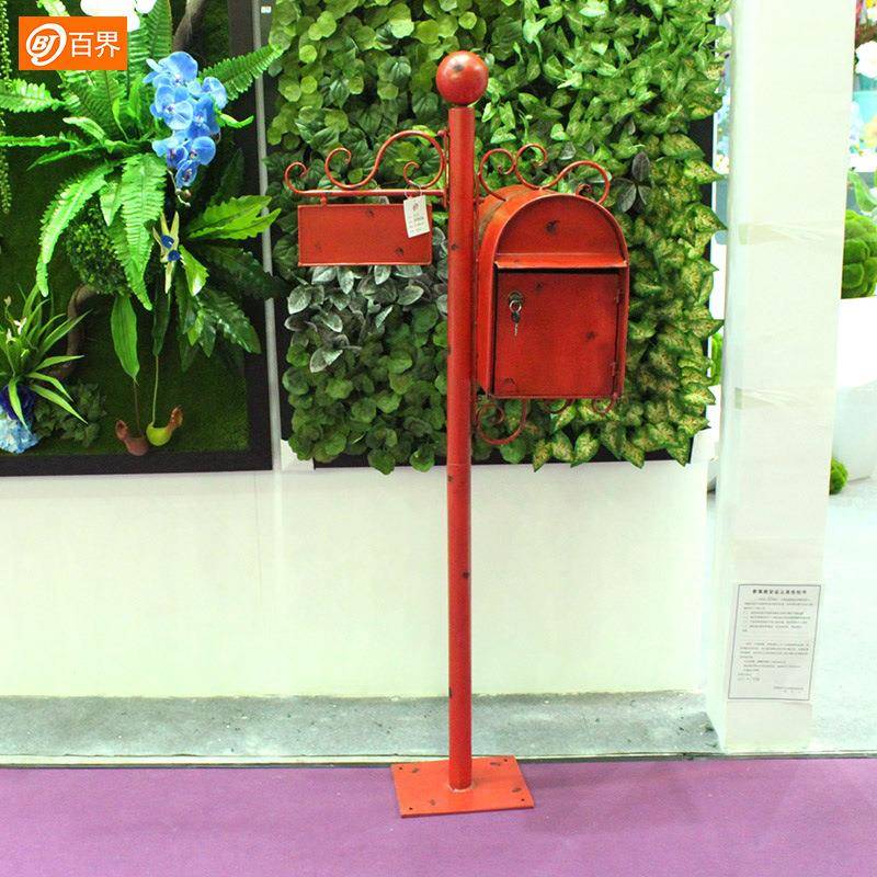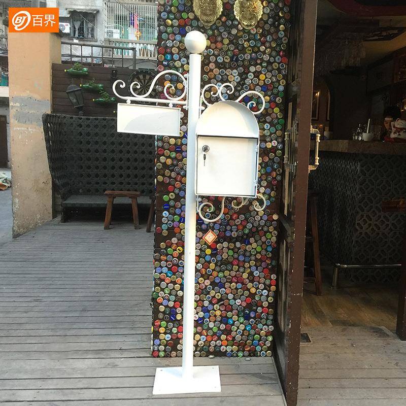 百界美式复古铁艺信箱落地带锁邮筒室外防雨信报箱别墅邮箱装饰品
