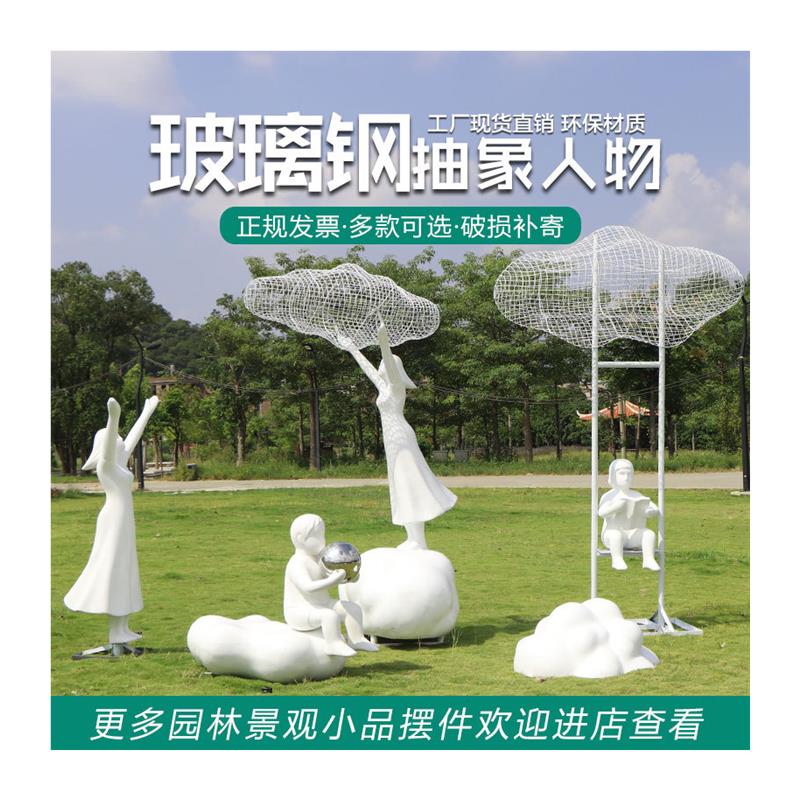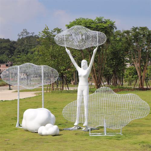 户外铁艺抽象人物雕塑玻璃钢不锈钢镂空云朵摆件广场公园草坪装饰